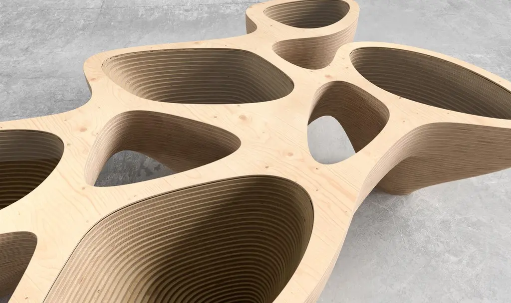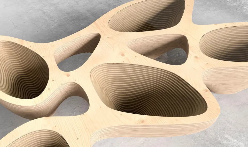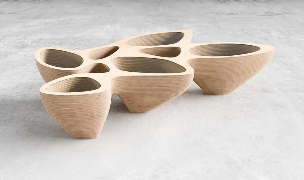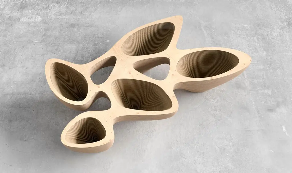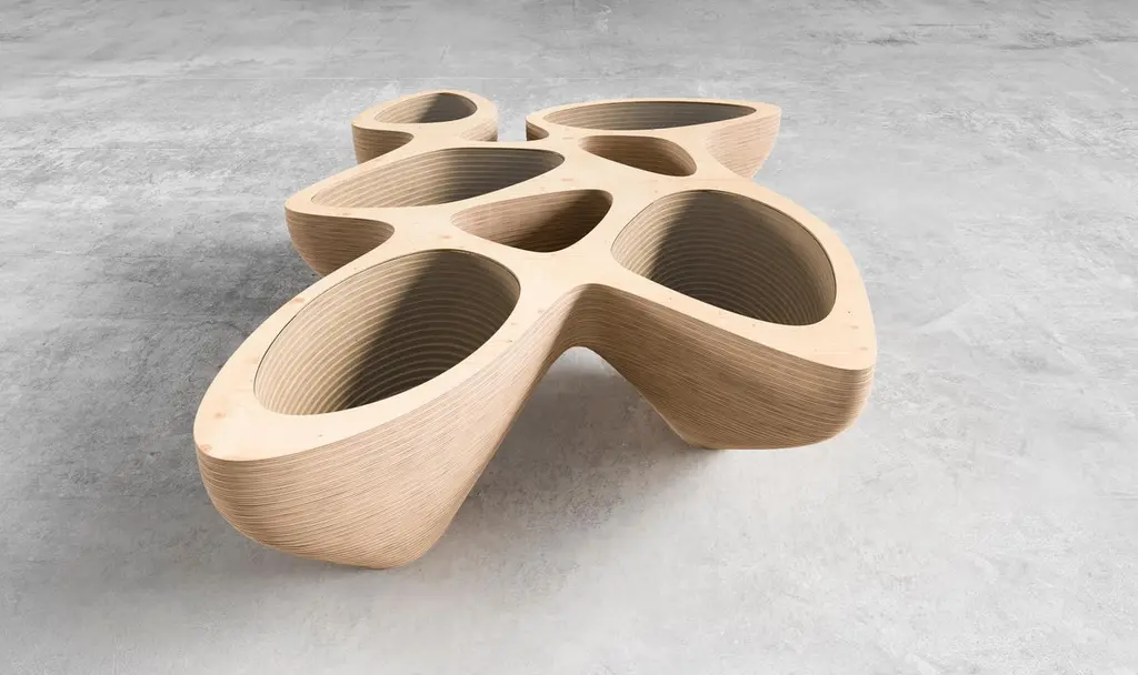 Organic Plywood Coffee Table - Sculptural Parametric Cnc-Cut Design