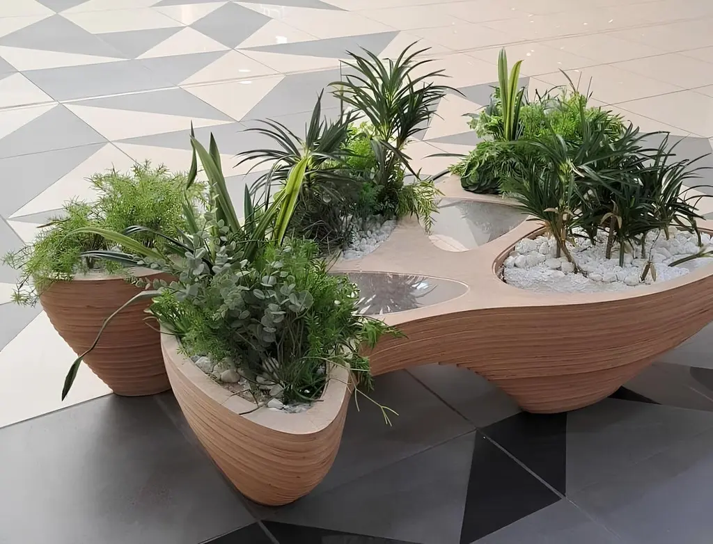 Rain Gatherer Coffee Table – A Statement Piece for Modern SpacesBring nature into your home with the Rain Gatherer Coffee Table, a beautifully crafted plywood furniture piece that seamlessly blends functionality and aesthetics. Its organic shape and layered wood design create a sculptural centerpiece, perfect for modern interiors.Features:Multi-Use Surface – Designed with built-in openings that can be used for displaying plants, decorative objects, or functional storage.Customizable Look – Transparent acrylic covers allow you to create a seamless tabletop or reveal the recessed sections for unique styling.Premium Craftsmanship – Made from high-quality plywood, offering durability, natural warmth, and a smooth, polished finish.Versatile for Any Space – Ideal for living rooms, lounges, offices, or hospitality settings, adding a touch of organic elegance.