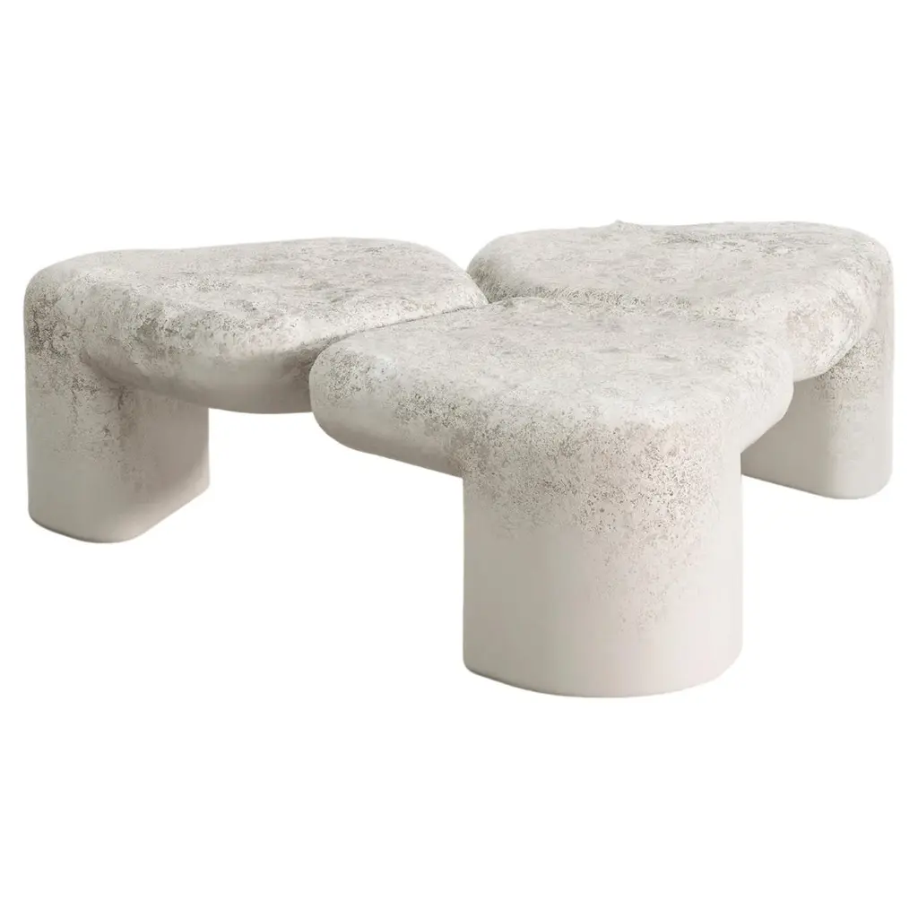 Trinity coffee table by Pietro Franceschini.Dimensions: W 119 x L 107 x H 34 cm.Materials: Plaster.Pietro Franceschini is an architect and designer based in New York and Florence. He was educated in Italy, Portugal and United States. After receiving his B.Arch cum laude from Università degli Studi di Firenze and his M.S.Arch with 1st class honour from Pratt Institute, he collaborated among others with Leeser Architecture in Brooklyn, Claudio Nardi in Florence, Laisné Roussel in Paris and Carlo Ratti Associati in New York. His latest project - PFStudio - was born as an interior and furniture design practice.