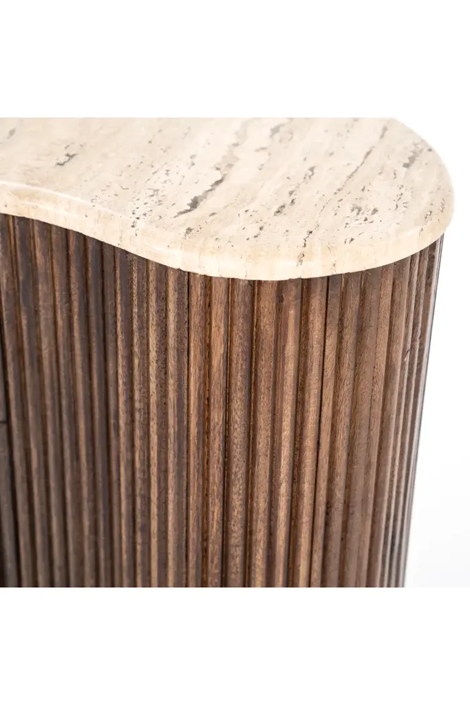 A highly stylish coffee table for modern settings, Mari by Eleonora evokes rhythm and flow with its one-of-a-kind organic shape. It's made with mango wood and travertine - a combination resulting to a sense of elegance.