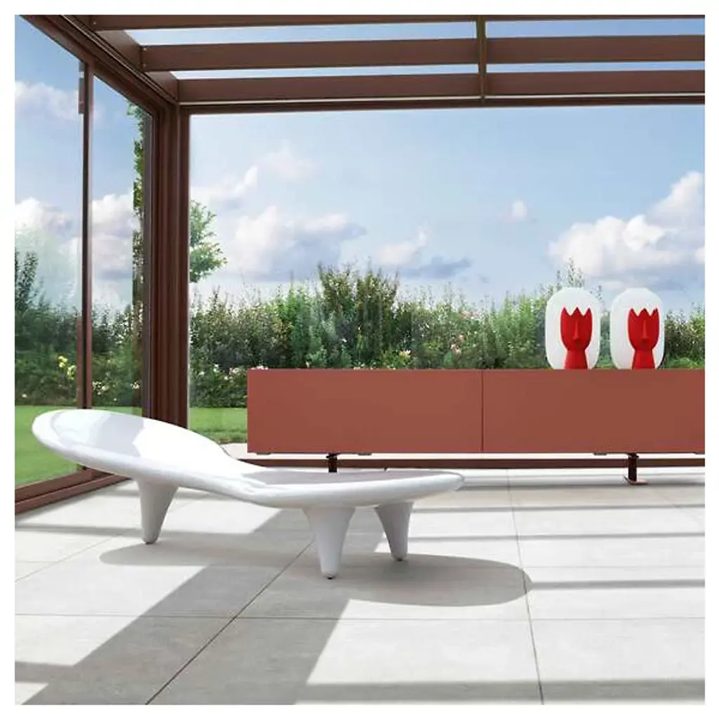 Provide a soothing organic presence to gathering spaces with the retro-modern elegance of the Orgone Table from Cappellini. A curving creation from the multitalented Marc Newson, it utilizes his experience with everything from manufacturing and technology to luxury goods to create something truly unique. A durable fiberglass form able to endure outdoor conditions while remaining refined enough for indoor areas, it’s meant to evoke a surfboard, and its two-lobed tabletop features curving edges sweeping down to an open, contoured interior. It’s steadied atop four legs that appear to naturally extend from the lower surface, narrowing as they descend while still offering ample space for people to sit around it.