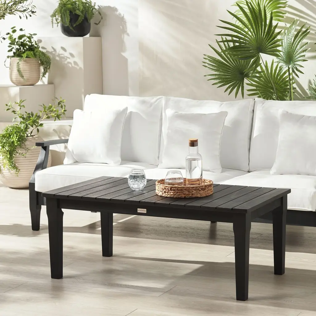 Orin Outdoor Eucalyptus Patio Coffee Table, Black
