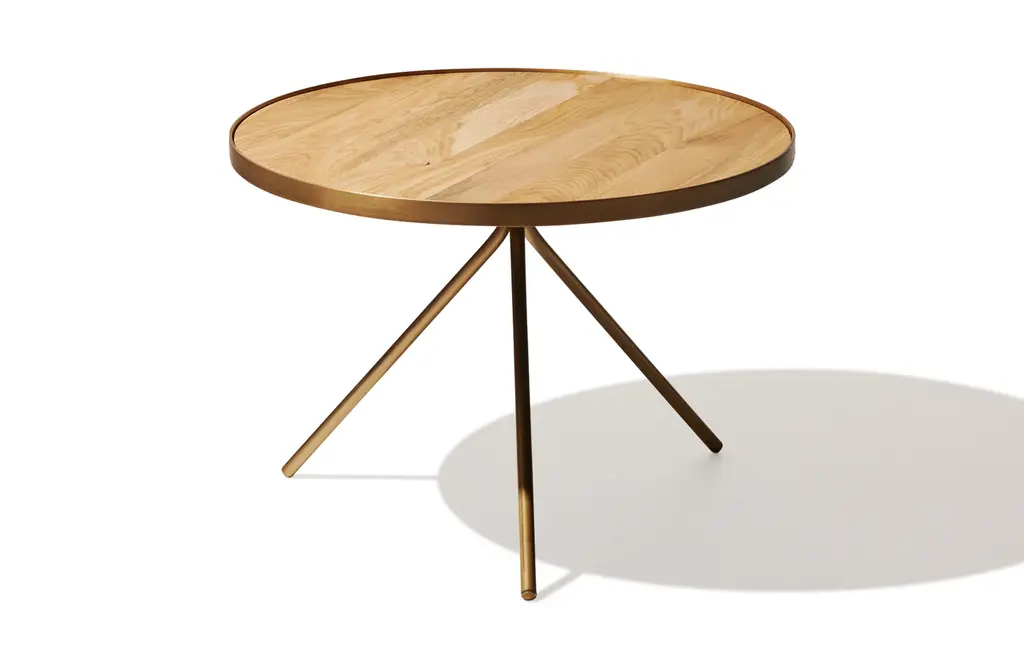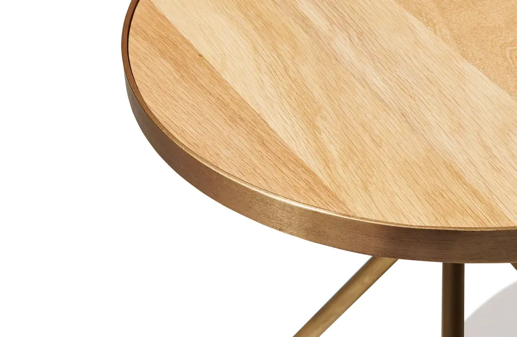 Available in three sizes to fit any space, the Orion Coffee Table features an oak tabletop with expressive tripod legs that add stability and style. An antique brass frame encircles the tabletop to add a contemporary edge to the natural-oiled oak finish, demonstrating the artistry of the eastern European craftsmen who build the table using time-honored techniques and materials.