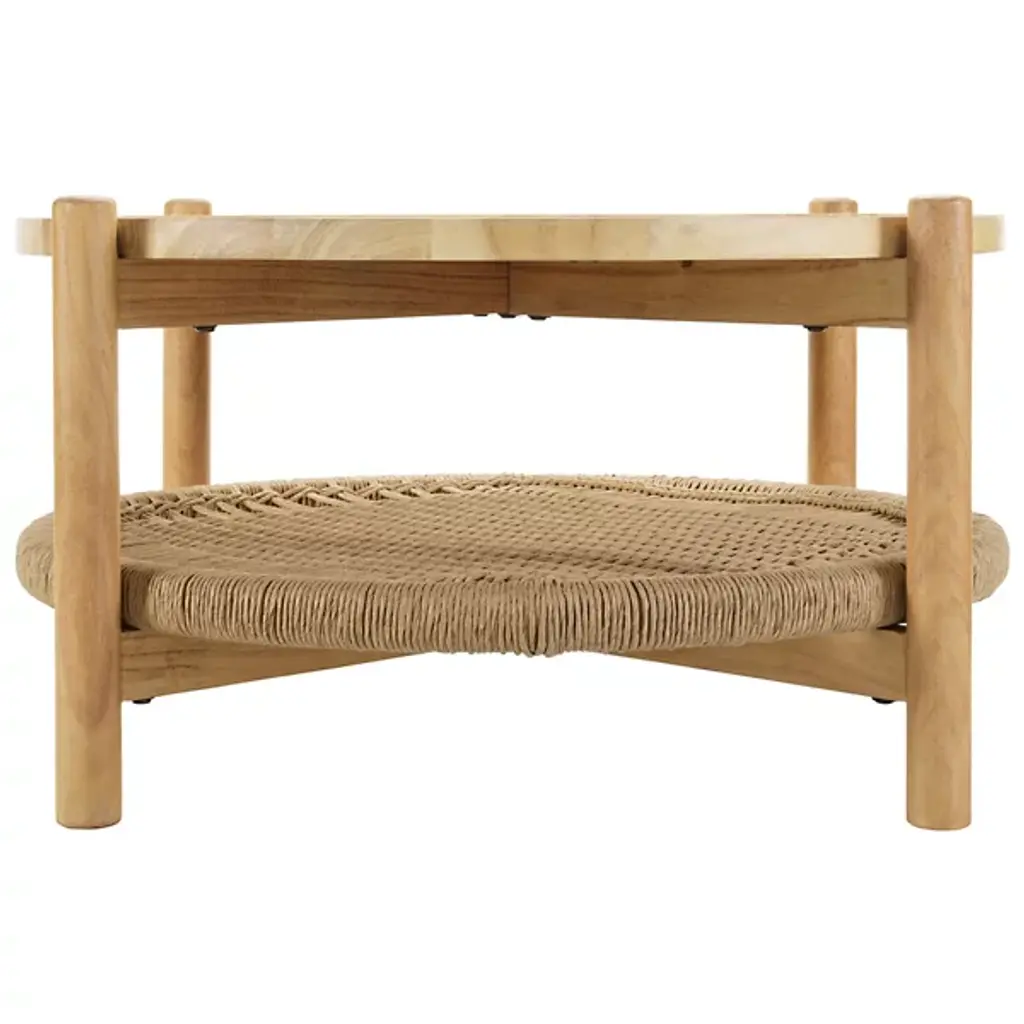 The Orly Coffee Table by Surya is a perfect blend of Scandinavian simplicity and rustic charm. Handcrafted in India from sturdy mango wood, this table features a sleek, round hardwood top and a beautifully woven wicker shelf in a rich wheat brown finish. The four-legged design ensures stability while offering a touch of natural aesthetic, delivering a stylish, yet practical accent to your living space.