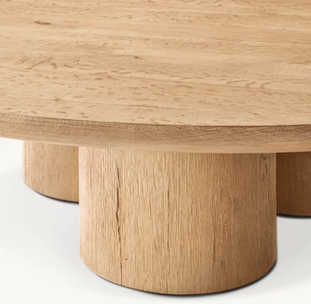 Oslo by Harrison and Nicholas Condos is inspired by the simplicity of organic midcentury design. Defined by a sculptural grouping of cylindrical supports, the tables are meticulously handcrafted of wire-brushed American white oak. A high-heat finishing process creates distinctive cracking, further enhancing the wood's rich texture and unique grain patterning – an elegant juxtaposition of rustic and relaxed, minimalist and refined. SHOP THE ENTIRE COLLECTION