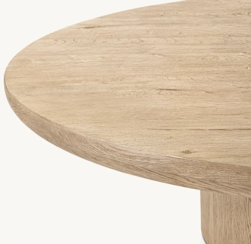 Oslo by Harrison and Nicholas Condos is inspired by the simplicity of organic midcentury design. Defined by rounded edges and a pedestal base, the tables are meticulously handcrafted of wire-brushed American white oak. A high-heat finishing process creates distinctive cracking, further enhancing the wood's rich texture and unique grain patterning – an elegant juxtaposition of rustic and relaxed, minimalist and refined. SHOP THE ENTIRE COLLECTION