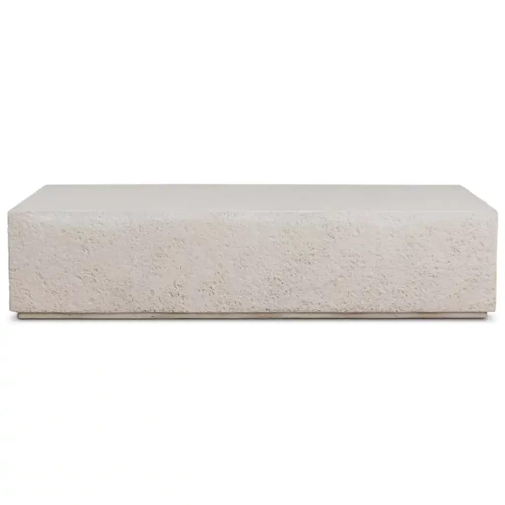 The Otero Rectangular Outdoor Coffee Table from Four Hands exudes contemporary charm. It takes the form of a rectangular prism, offering a minimalistic presentation. It boasts defined corners and is composed of concrete for durability. Otero has a clean surface, leaving space for your accessories and mugs. Its raw edge adds texture, accentuating its depth and dimensionality. Your outdoor coffee table gives your environment a rustic, modern vibe for a welcoming experience.