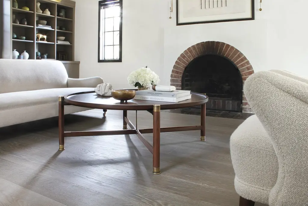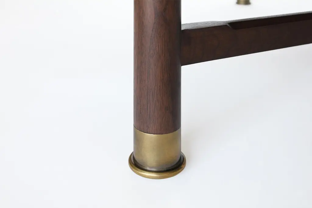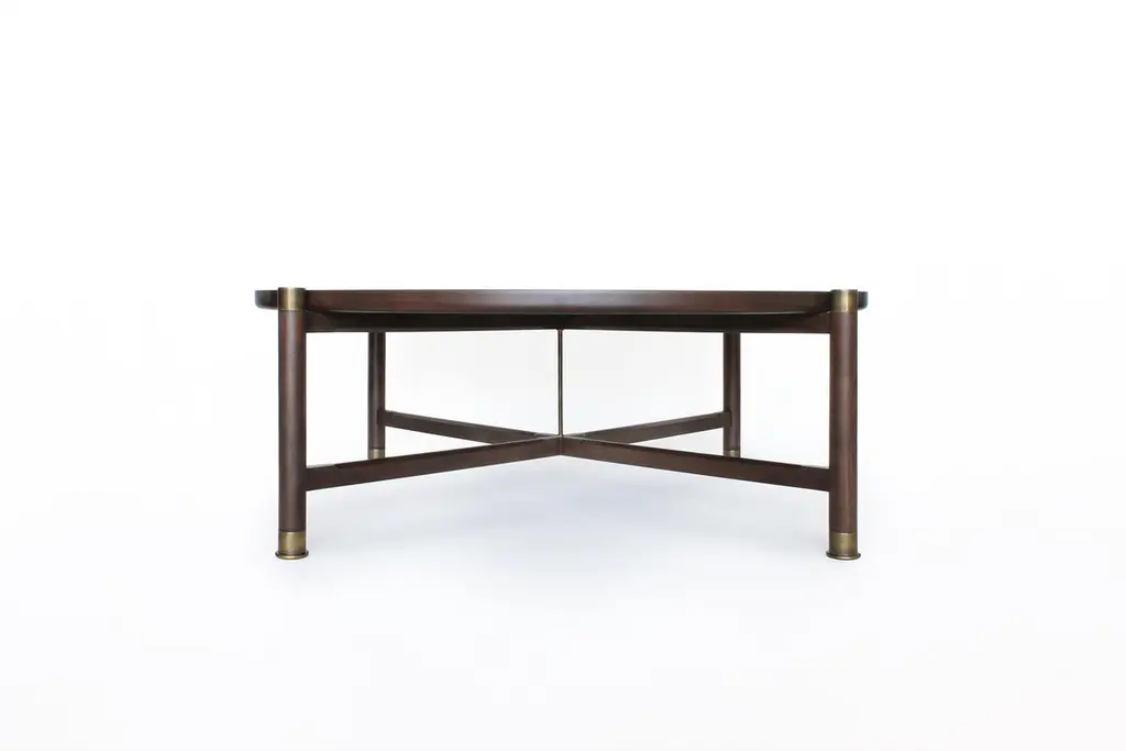 The Otto coffee table is a handsome, generously proportioned table with a timeless form.Available in walnut or oak, it features a round coupe top, substantial antique brass fittings, and sleek chamfered stretchers. The epitome of understated elegance – equally at home in both traditional and contemporary interiors.Dimensions: Coupe top diameter 40" x 16.5" tall (OAD: 43.25")Finish: Medium Walnut with matte lacquer and hand waxed finish Customization available upon request. This item will require crating and packaging for an additional charge.The Ø Collection by Herringbone Designed: Bespoke at birth. Never out of style.Designed & Manufactured in Los Angeles, CA.