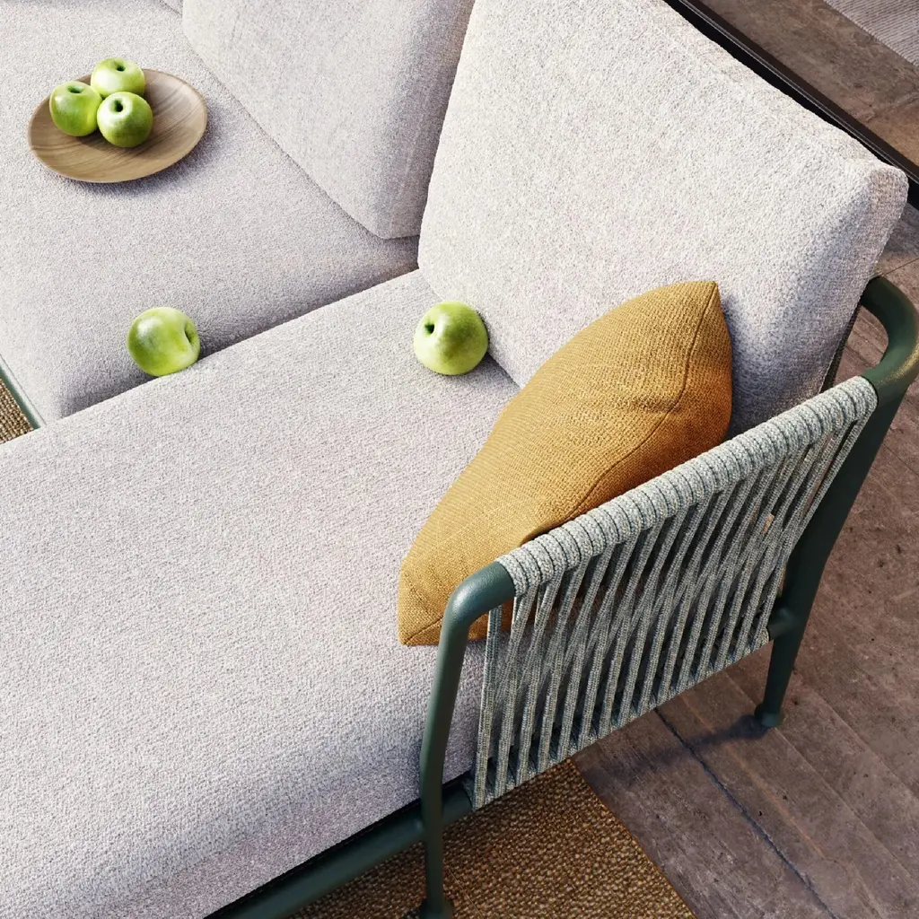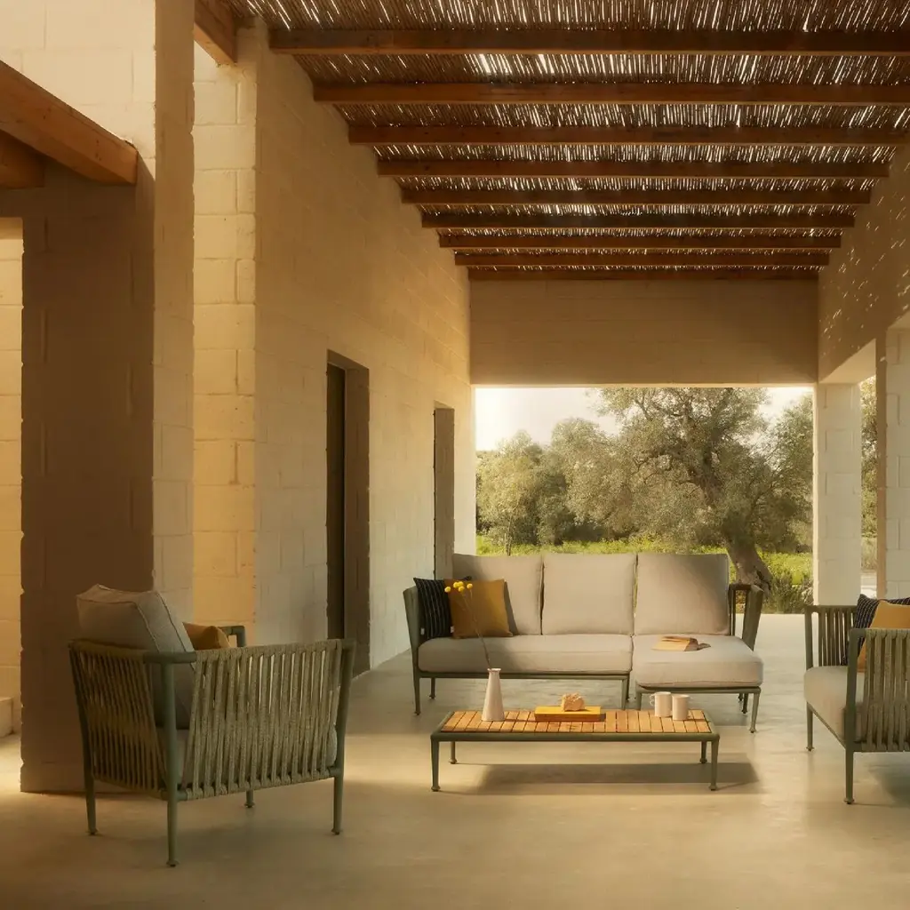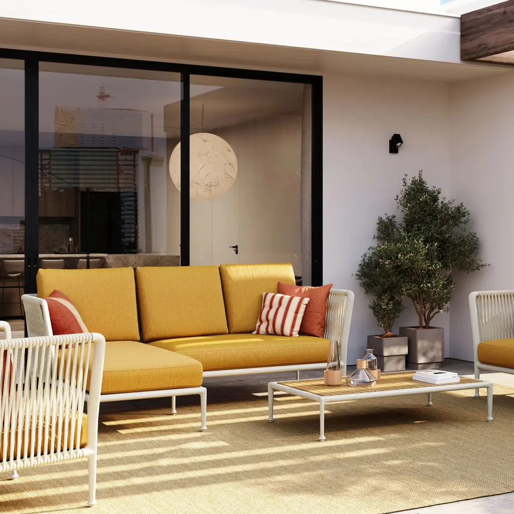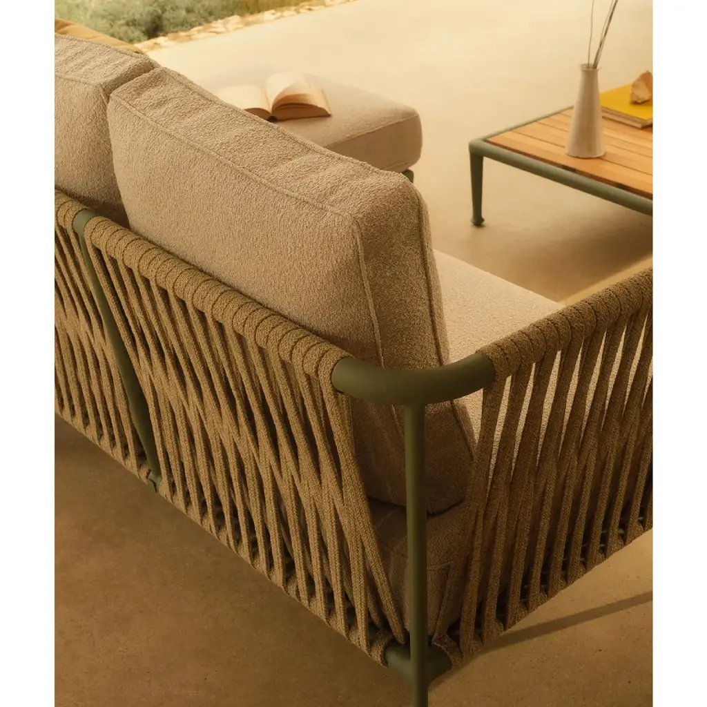 Elevate your outdoor space with the Unopiu Treble Outdoor Chaise Lounge. Crafted with premium aluminum and durable rope, its sleek design exudes sophistication. Choose from graphite, sage, syrah, or sand finishes to complement any setting. Add a touch of elegance with the optional teak-topped coffee table.