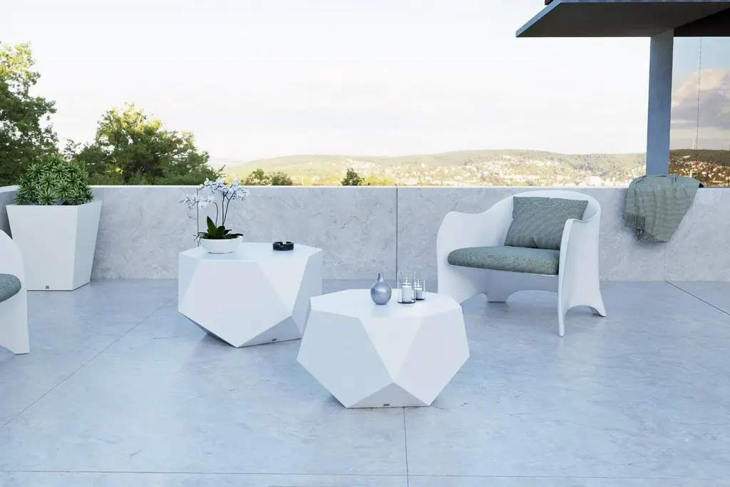 Handcrafted of resin reinforced with fiberglass and lacquered in matte white.Unlike concrete, reinforced resin is forceful enough to withstand extreme weather conditions without cracking Small size: 60 x 60 x 40 cm / 23.6 x 23.6 x 15.7 in Weight: 12 kg / 26.5 lbsLarge size: 77 x 77 x 46 cm / 30.3 x 30.3 x 18.1 in Weight: 15 kg / 33.1 lbsCustom sizes available upon request.This piece is offered in any RAL color, standard finishes and select metallic finishes, contact us for enquire about finish and size customizations.Custom made cover is available upon request.We do our best to expedite production and to ship and deliver product within the listed lead time, however current lead times might be longer due to global shipping backlog and delays. These delays are out of our control and cannot be a reason to cancel an order.