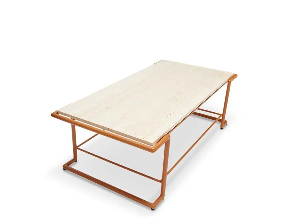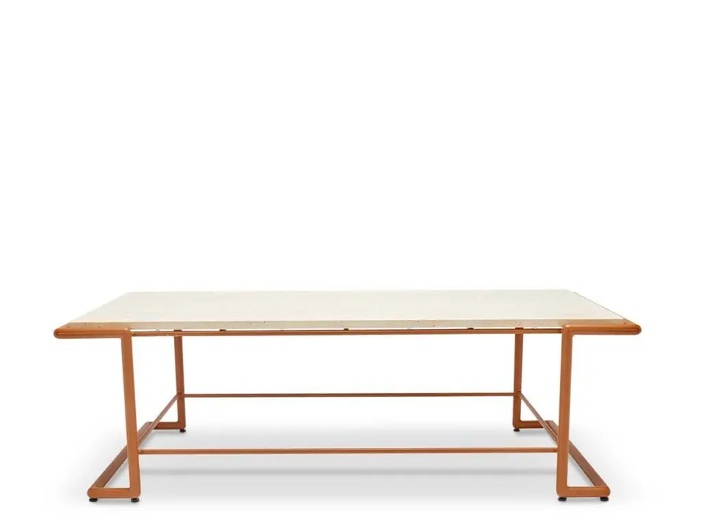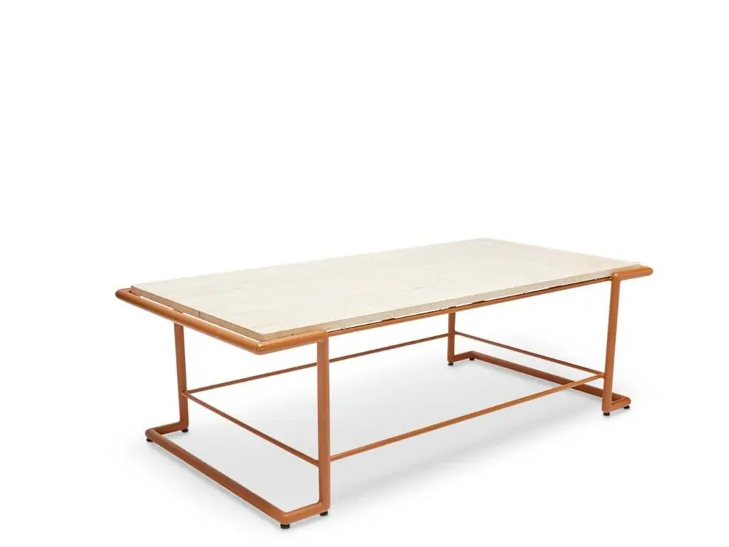 The Hinterland Coffee Table features a powder coated iron tube base and choice of 3 different tops; teak slat, stone, or a cast tempered glass with a corduroy pattern. The Lawson-Fenning Collection is designed and handmade in Los Angeles, California. Reach out to discover what options are currently in stock.