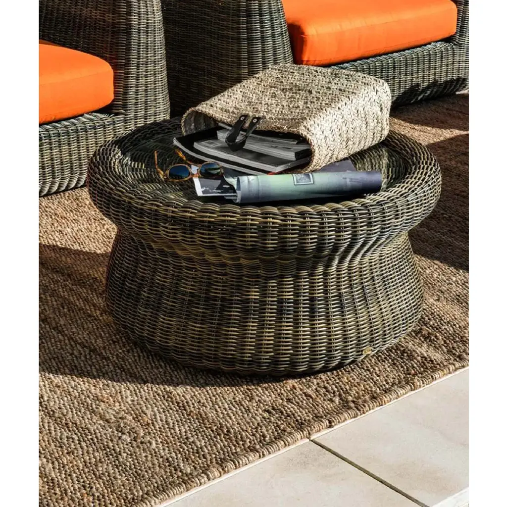 Experience luxury and sophistication with the Outdoor Low Round Coffee Table from Unopiu Agorà. Featuring hand-woven WaProLace® tropical brown or white synthetic WaProLace , this aluminum table boasts sinuous and enveloping shapes, perfect for any outdoor setting. Elevate your space with the Agorà line's elegant and versatile design.