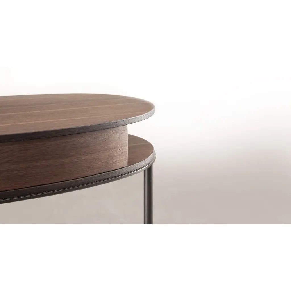 The Oval 1-Drawer Coffee Table by Lema Ortis has become the iconic yet functional accessory for storing and concealing small objects. It is designed to be placed beside a bed, a sofa, or an armchair. Designed for the bedroom area, it also fits into other rooms, enhancing lounges and social spaces. The Ortis coffee table is distinguished by its sophisticated metal tube structure anchored to semi-circular plates at the base, combined with an oval top, available in glossy, matte lacquered finish or wood.