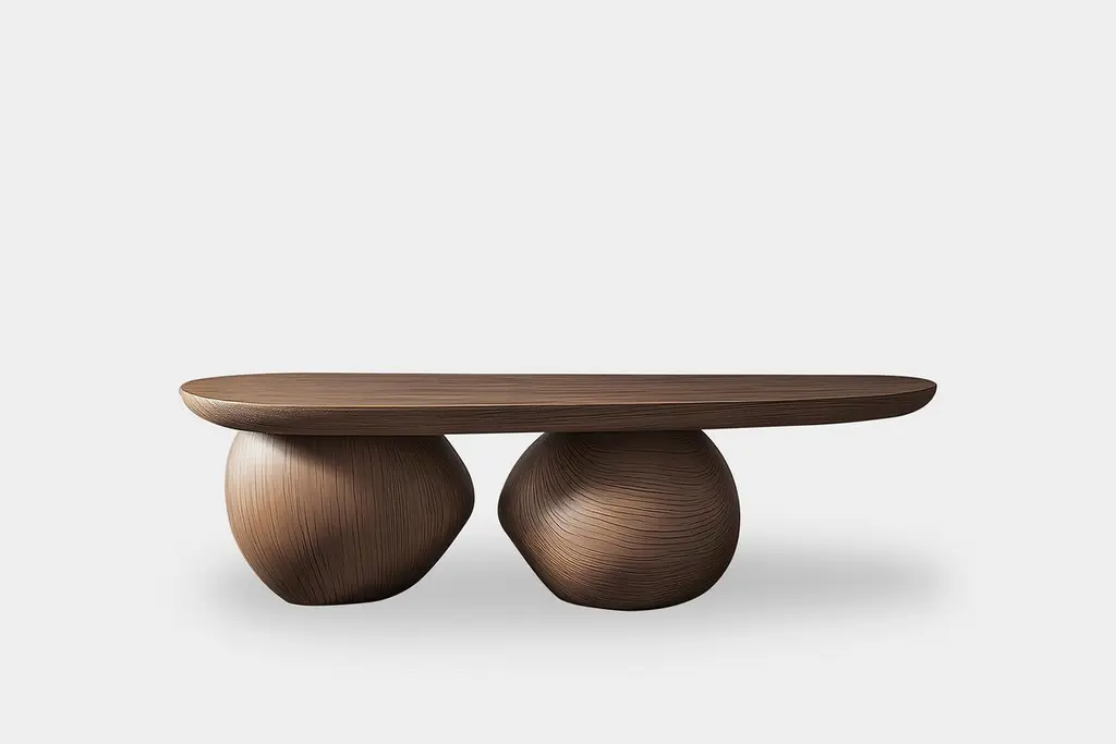 Oval Coffee Table Serie 16 – Sereno by NONO with Sculptural Details———Sereno Coffee Table Series – A Note from Joel EscalonaWhat happens when structure becomes art?These are the questions that guided me in designing the Sereno Coffee Table Series. I wanted to create pieces where beauty wasn’t just about what you see on the surface but also about how things come together—the hidden elements that often go unnoticed but are essential to balance and harmony.With Sereno, the story lies beneath. The tabletop is minimal and clean, but the legs—sculpted like soft, wooden pebbles—are the soul of the design. These organic shapes are carefully placed to support the structure, giving the table a subtle presence, as if it’s effortlessly floating just above the ground. Each pebble leg is different, creating a sense of individuality that reflects the natural variations found in the world around us.For this collection, I chose to work exclusively with solid wood because I believe in the honest beauty of natural materials. You can select red oak with a natural finish, or explore tinted variations to match your space. For those seeking a richer expression, walnut or white oak are available as premium options. Each piece feels tactile, solid, and timeless—something you’ll want to touch and live with every day.The Sereno Coffee Tables come in a range of shapes—round, oval, or rectangular—designed to complement any environment. Whether your space is minimal or eclectic, these tables will feel at home without demanding attention. They’re complete as they are, with or without objects, bringing a sense of calm wherever they are placed.With Sereno, my goal was to create pieces that embody balance, simplicity, and subtle artistry—tables that feel meaningful not because they are heavily adorned, but because they are thoughtfully crafted. At the heart of this collection is the belief that great design doesn’t need to shout; it just needs to feel right.I hope these tables bring a sense of quiet beauty to your home, transforming ordinary moments into something extraordinary.—NONO is a Mexican design brand with more than 10 years of experience dedicated to the production of interior furnishings, editions, and custom-made projects. At NONO, we create pieces of extraordinary beauty, accommodating the particular needs and tastes of each client with exclusive high-quality designs.————Some details to consider when placing an order with us:• Catalog images are digitally generated. Actual products may slightly vary in texture, grain, and final finish due to natural material differences. Despite these variations, our expertise ensures each piece maintains high quality and matches the intended design.• All of our products are made to order, and the lead time for standard products is estimated to be 9 to 12 weeks, plus shipping time. However, special pieces or sculptures may require a longer lead time.• We offer customization in dimensions and finish for all of our furniture pieces, which may result in additional charges.• We only facilitate freight services by a third party. The client is solely responsible for any associated import/export taxes, as well as any necessary customs paperwork.• We are not responsible for any damages that may occur during shipping or for any customs-related delays.