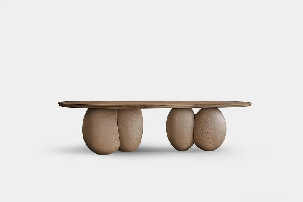 Oval Coffee Table Serie 62 – Sereno by Joel Escalona with Thoughtful Craftsmanship———Sereno Coffee Table Series – A Note from Joel EscalonaWhat happens when structure becomes art?These are the questions that guided me in designing the Sereno Coffee Table Series. I wanted to create pieces where beauty wasn’t just about what you see on the surface but also about how things come together—the hidden elements that often go unnoticed but are essential to balance and harmony.With Sereno, the story lies beneath. The tabletop is minimal and clean, but the legs—sculpted like soft, wooden pebbles—are the soul of the design. These organic shapes are carefully placed to support the structure, giving the table a subtle presence, as if it’s effortlessly floating just above the ground. Each pebble leg is different, creating a sense of individuality that reflects the natural variations found in the world around us.For this collection, I chose to work exclusively with solid wood because I believe in the honest beauty of natural materials. You can select red oak with a natural finish, or explore tinted variations to match your space. For those seeking a richer expression, walnut or white oak are available as premium options. Each piece feels tactile, solid, and timeless—something you’ll want to touch and live with every day.The Sereno Coffee Tables come in a range of shapes—round, oval, or rectangular—designed to complement any environment. Whether your space is minimal or eclectic, these tables will feel at home without demanding attention. They’re complete as they are, with or without objects, bringing a sense of calm wherever they are placed.With Sereno, my goal was to create pieces that embody balance, simplicity, and subtle artistry—tables that feel meaningful not because they are heavily adorned, but because they are thoughtfully crafted. At the heart of this collection is the belief that great design doesn’t need to shout; it just needs to feel right.I hope these tables bring a sense of quiet beauty to your home, transforming ordinary moments into something extraordinary.—NONO is a Mexican design brand with more than 10 years of experience dedicated to the production of interior furnishings, editions, and custom-made projects. At NONO, we create pieces of extraordinary beauty, accommodating the particular needs and tastes of each client with exclusive high-quality designs.————Some details to consider when placing an order with us:• Catalog images are digitally generated. Actual products may slightly vary in texture, grain, and final finish due to natural material differences. Despite these variations, our expertise ensures each piece maintains high quality and matches the intended design.• All of our products are made to order, and the lead time for standard products is estimated to be 9 to 12 weeks, plus shipping time. However, special pieces or sculptures may require a longer lead time.• We offer customization in dimensions and finish for all of our furniture pieces, which may result in additional charges.• We only facilitate freight services by a third party. The client is solely responsible for any associated import/export taxes, as well as any necessary customs paperwork.• We are not responsible for any damages that may occur during shipping or for any customs-related delays.