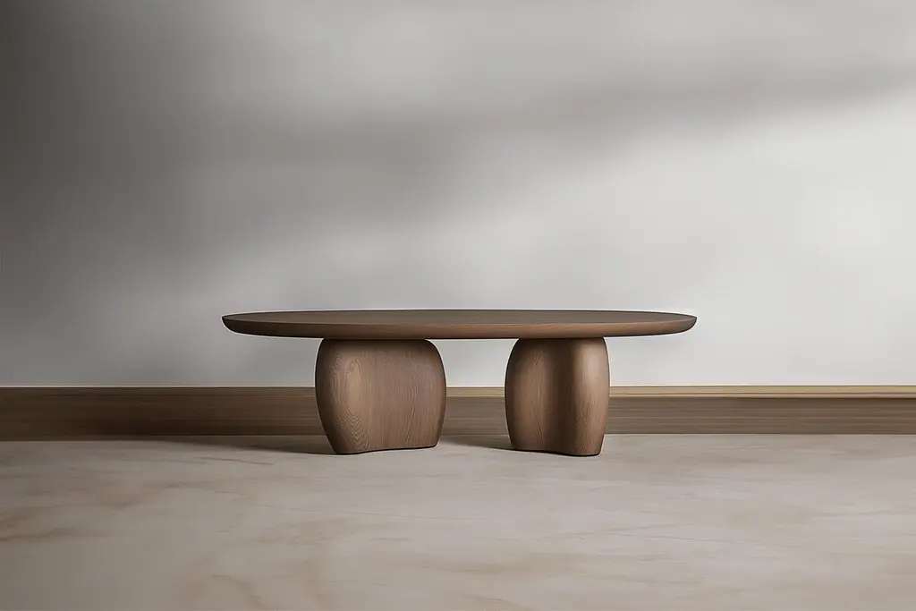 Oval Coffee Table Serie 76 – Sereno by Joel Escalona with Organic Forms———Sereno Coffee Table Series – A Note from Joel EscalonaWhat happens when structure becomes art?These are the questions that guided me in designing the Sereno Coffee Table Series. I wanted to create pieces where beauty wasn’t just about what you see on the surface but also about how things come together—the hidden elements that often go unnoticed but are essential to balance and harmony.With Sereno, the story lies beneath. The tabletop is minimal and clean, but the legs—sculpted like soft, wooden pebbles—are the soul of the design. These organic shapes are carefully placed to support the structure, giving the table a subtle presence, as if it’s effortlessly floating just above the ground. Each pebble leg is different, creating a sense of individuality that reflects the natural variations found in the world around us.For this collection, I chose to work exclusively with solid wood because I believe in the honest beauty of natural materials. You can select red oak with a natural finish, or explore tinted variations to match your space. For those seeking a richer expression, walnut or white oak are available as premium options. Each piece feels tactile, solid, and timeless—something you’ll want to touch and live with every day.The Sereno Coffee Tables come in a range of shapes—round, oval, or rectangular—designed to complement any environment. Whether your space is minimal or eclectic, these tables will feel at home without demanding attention. They’re complete as they are, with or without objects, bringing a sense of calm wherever they are placed.With Sereno, my goal was to create pieces that embody balance, simplicity, and subtle artistry—tables that feel meaningful not because they are heavily adorned, but because they are thoughtfully crafted. At the heart of this collection is the belief that great design doesn’t need to shout; it just needs to feel right.I hope these tables bring a sense of quiet beauty to your home, transforming ordinary moments into something extraordinary.—NONO is a Mexican design brand with more than 10 years of experience dedicated to the production of interior furnishings, editions, and custom-made projects. At NONO, we create pieces of extraordinary beauty, accommodating the particular needs and tastes of each client with exclusive high-quality designs.————Some details to consider when placing an order with us:• Catalog images are digitally generated. Actual products may slightly vary in texture, grain, and final finish due to natural material differences. Despite these variations, our expertise ensures each piece maintains high quality and matches the intended design.• All of our products are made to order, and the lead time for standard products is estimated to be 9 to 12 weeks, plus shipping time. However, special pieces or sculptures may require a longer lead time.• We offer customization in dimensions and finish for all of our furniture pieces, which may result in additional charges.• We only facilitate freight services by a third party. The client is solely responsible for any associated import/export taxes, as well as any necessary customs paperwork.• We are not responsible for any damages that may occur during shipping or for any customs-related delays.