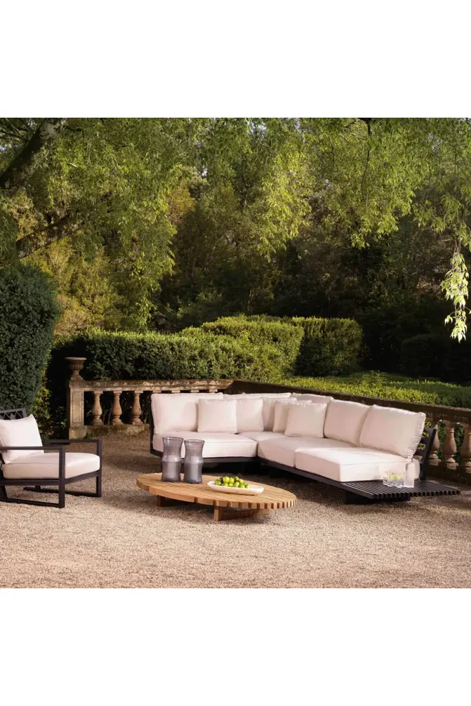 Bring contemporary charm to your outdoor sanctuary with the stylish Anjuna coffee table by Eichholtz. Slatted natural teak fashioned into an oval furniture to cater you daily dose of relaxing outdoor lounge.