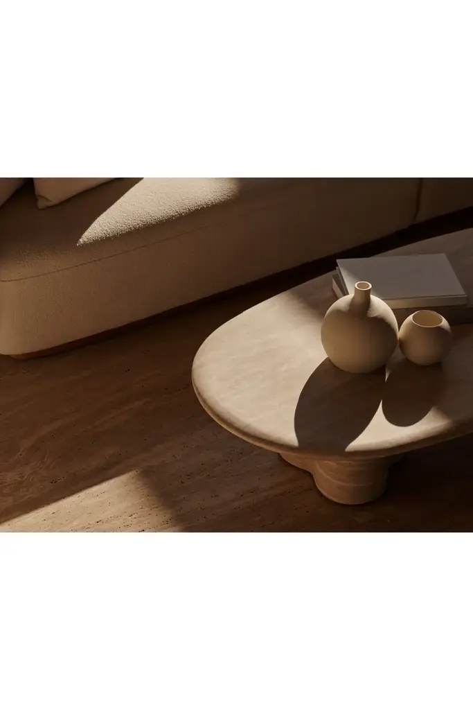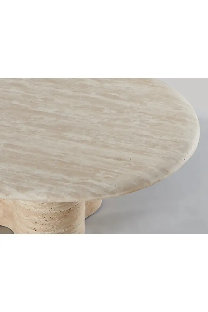 A contemporary and classic study in soft curves, our Porto collection creates a natural interplay between shadow and light with sculptural forms in the base. The mixed-material Porto Round Coffee Table 48" anchors your outdoor seating set - featuring a single robust travertine base suspending an organic travertine stone top all in Natural with a gentle, sloping bullnose edge. The compact circular shape of the tabletop pairs nicely with a variety of configurations and vignettes. This unique outdoor coffee table elevates a variety of spaces.