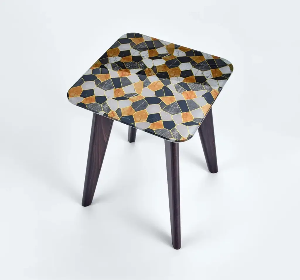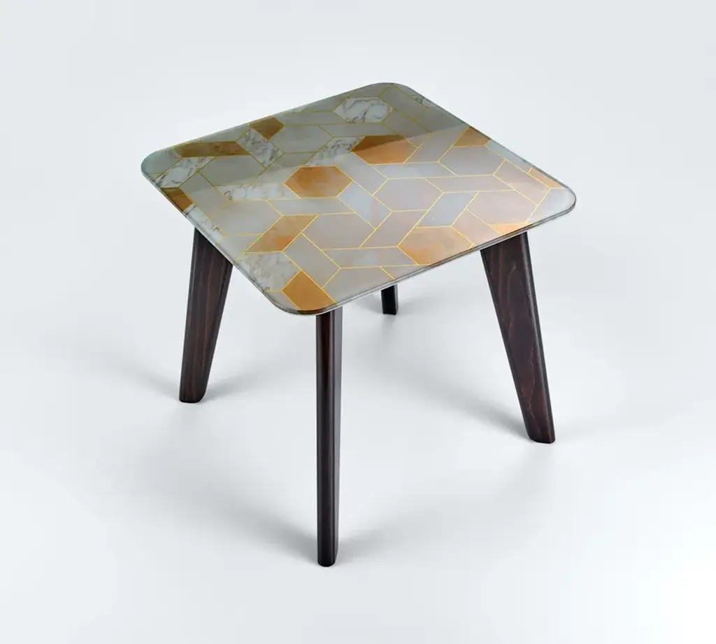Owen is a simple but very elegant coffee table which freely interprets the 1950s style. A style that has brought on linearity thanks to a mix of styles, adding comfort and a pinch of irony.Legs in solid wood with frosted, metallic lacquered finish. Top in Vetrite glass.Different finishes available.