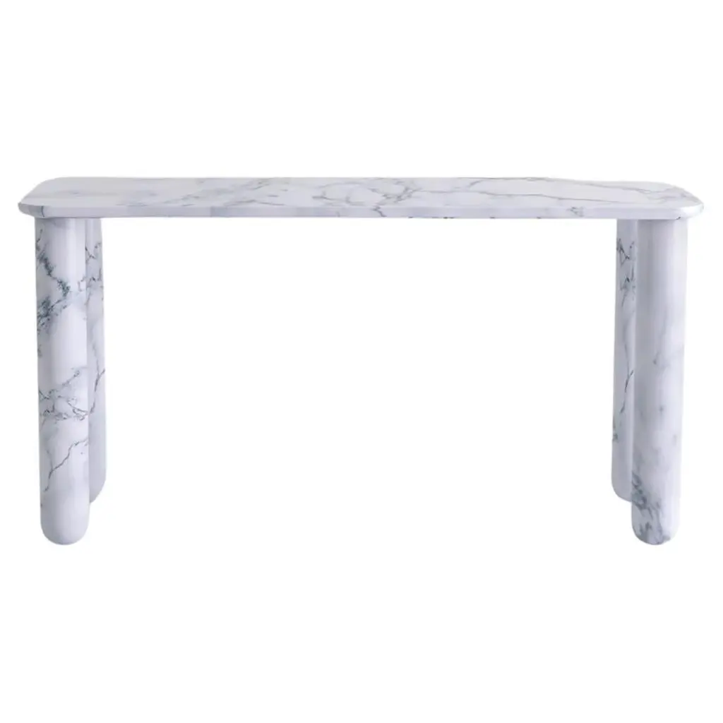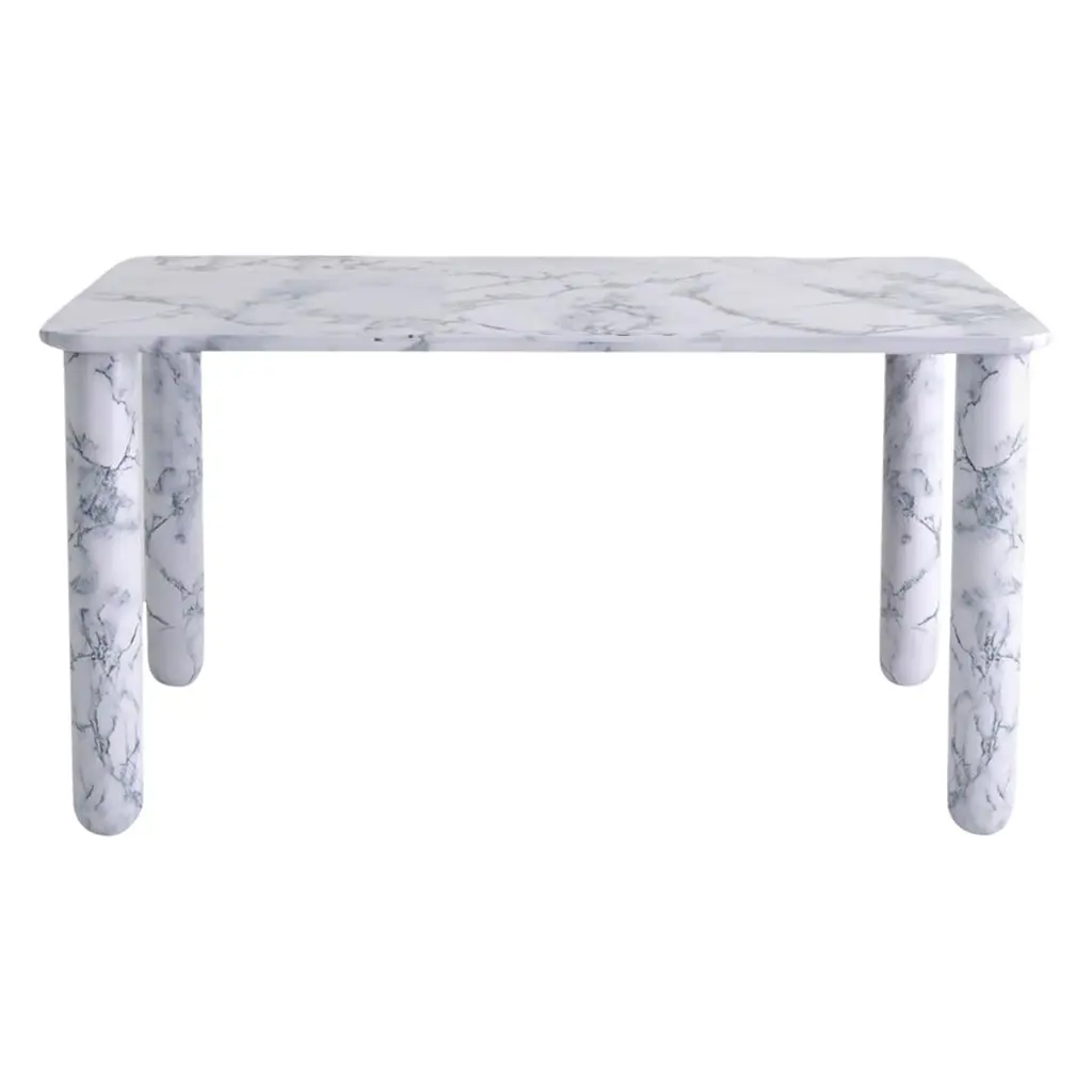Defined by clean and simple lines and a mesmerizing golden veining enhancing the white top, this magnificent coffee table will make a bold statement in any room of a modern interior. Resting on four slanted legs made of wood and lacquered with a satin white metal finish, the top is uniquely fashioned of Vetrite, a Sicis-patented material composed of glass slabs made of special polymers. Available with polished legs upon request to the Concierge.