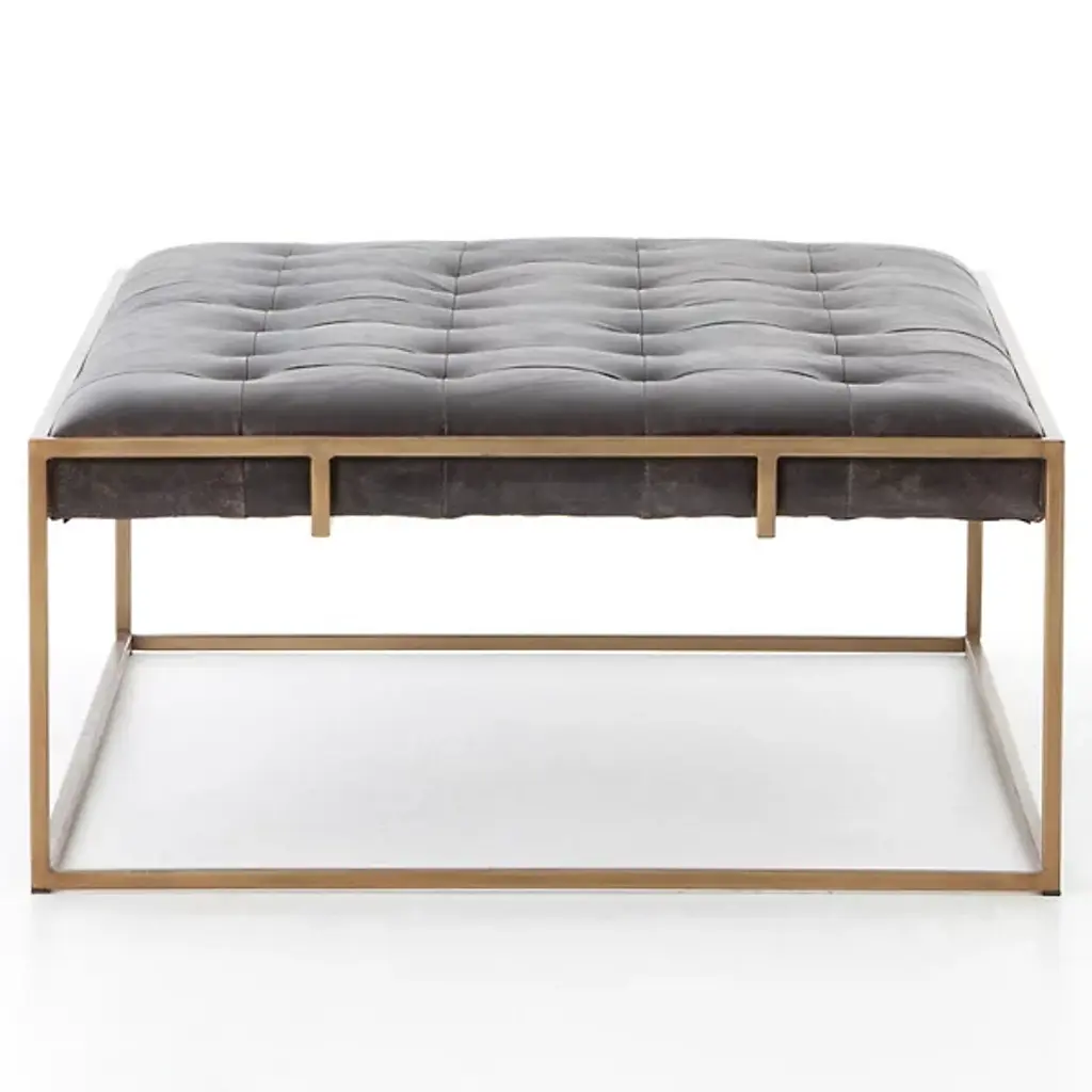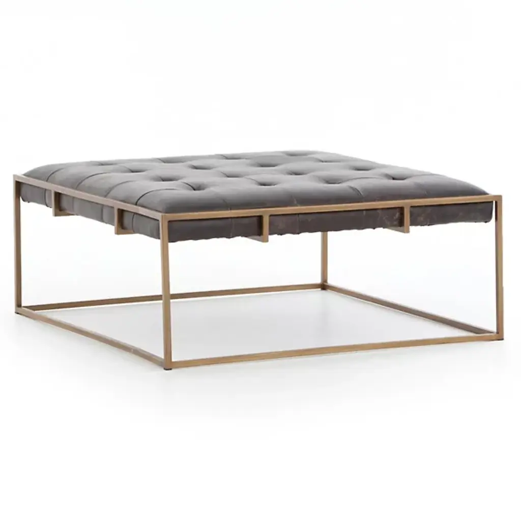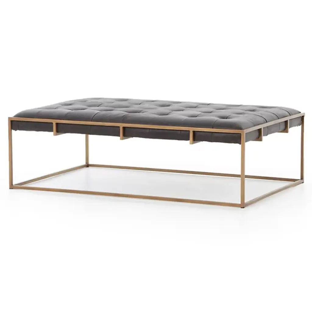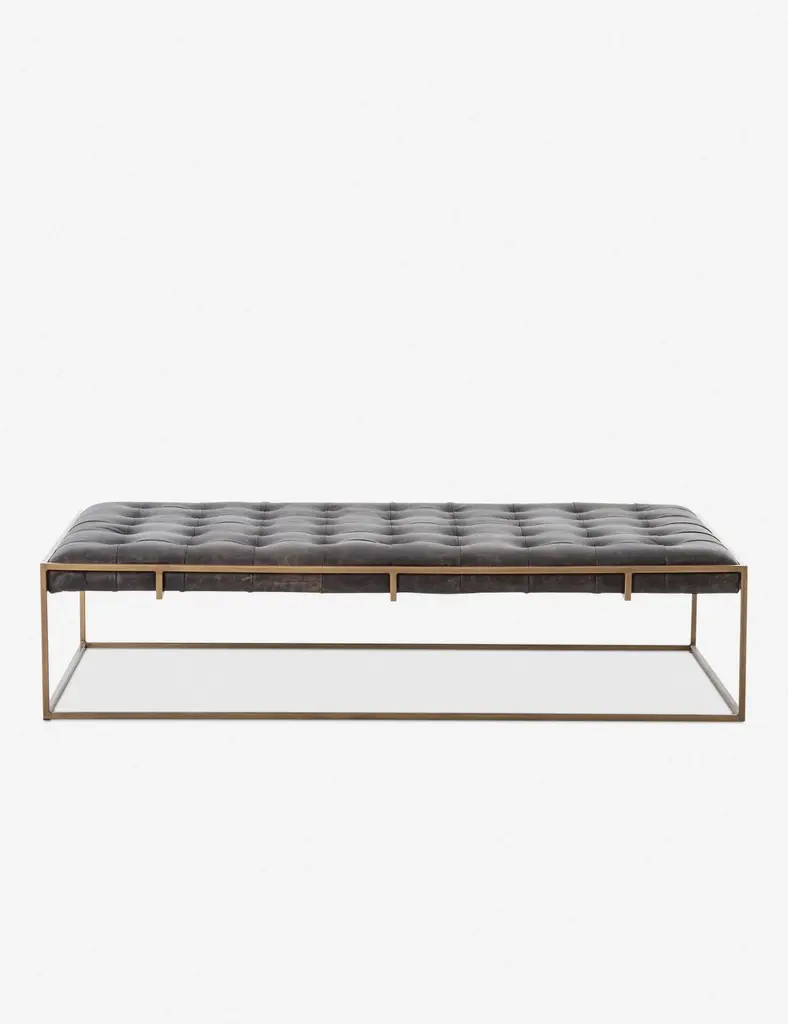The Oxford Coffee Table from Four Hands fuses traditional library aesthetics with contemporary flair. Its surface features blind-tufted, top-grain leather suspended within an antique brass frame. The base's intricate cage-like design adds visual interest and structural integrity. This unique combination of materials and styles creates a focal point in any living area. More than just a functional piece, the Oxford Coffee Table bridges the gap between classic and modern design sensibilities.