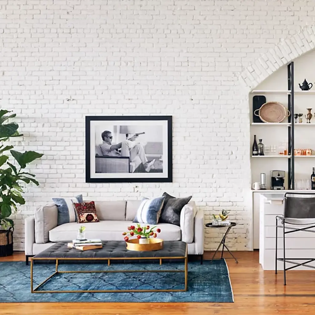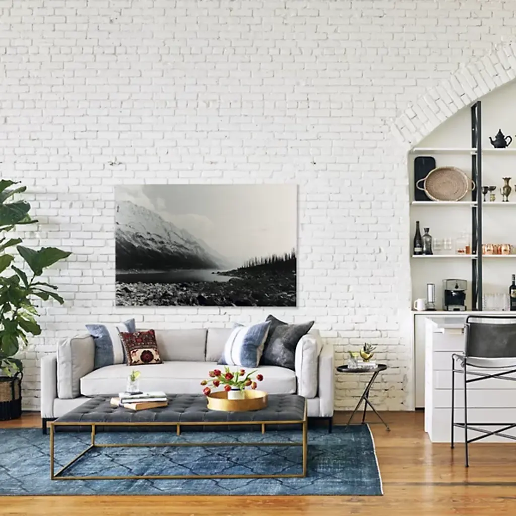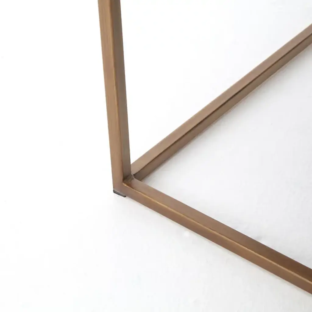 The Oxford Coffee Table from Four Hands fuses traditional library aesthetics with contemporary flair. Its surface features blind-tufted, top-grain leather suspended within an antique brass frame. The base's intricate cage-like design adds visual interest and structural integrity. This unique combination of materials and styles creates a focal point in any living area. More than just a functional piece, the Oxford Coffee Table bridges the gap between classic and modern design sensibilities.
