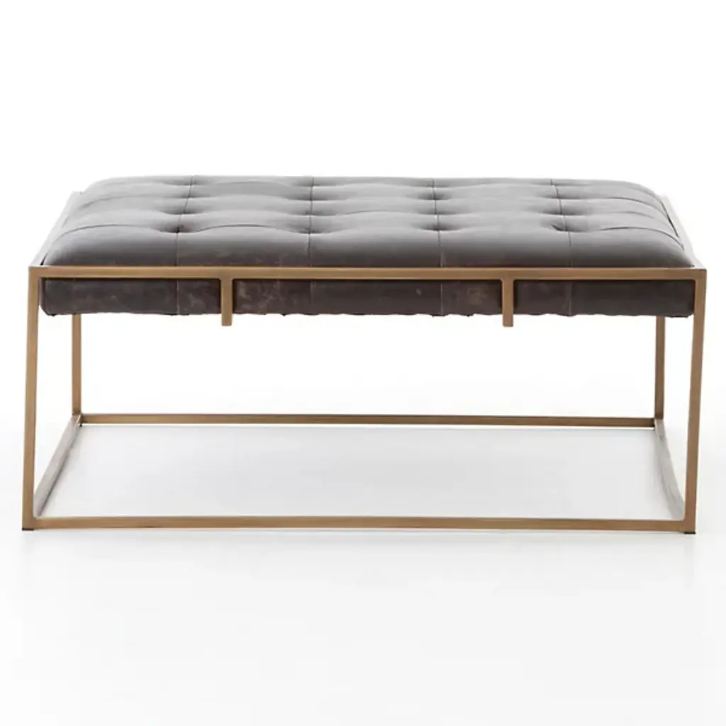 Blending classic library style with modern sophistication, the Oxford Square Coffee Table from Four Hands features a sleek, contemporary design that elevates any space. The blind-tufted, top-grain leather surface appears to float within a sturdy iron base, showcasing intricate cage-like detailing for added visual interest. The combination of rich leather and industrial-inspired metal creates a striking contrast, making it a versatile statement piece that complements both traditional and contemporary interiors with timeless elegance.