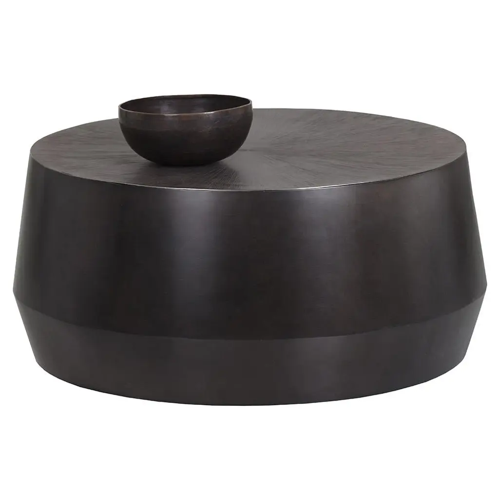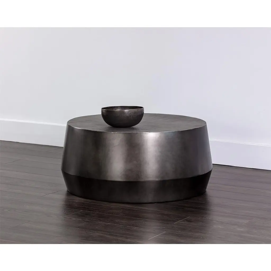 Pacheco Industrial Loft Gunmetal Aluminum Etched Drum Coffee Table - 34"