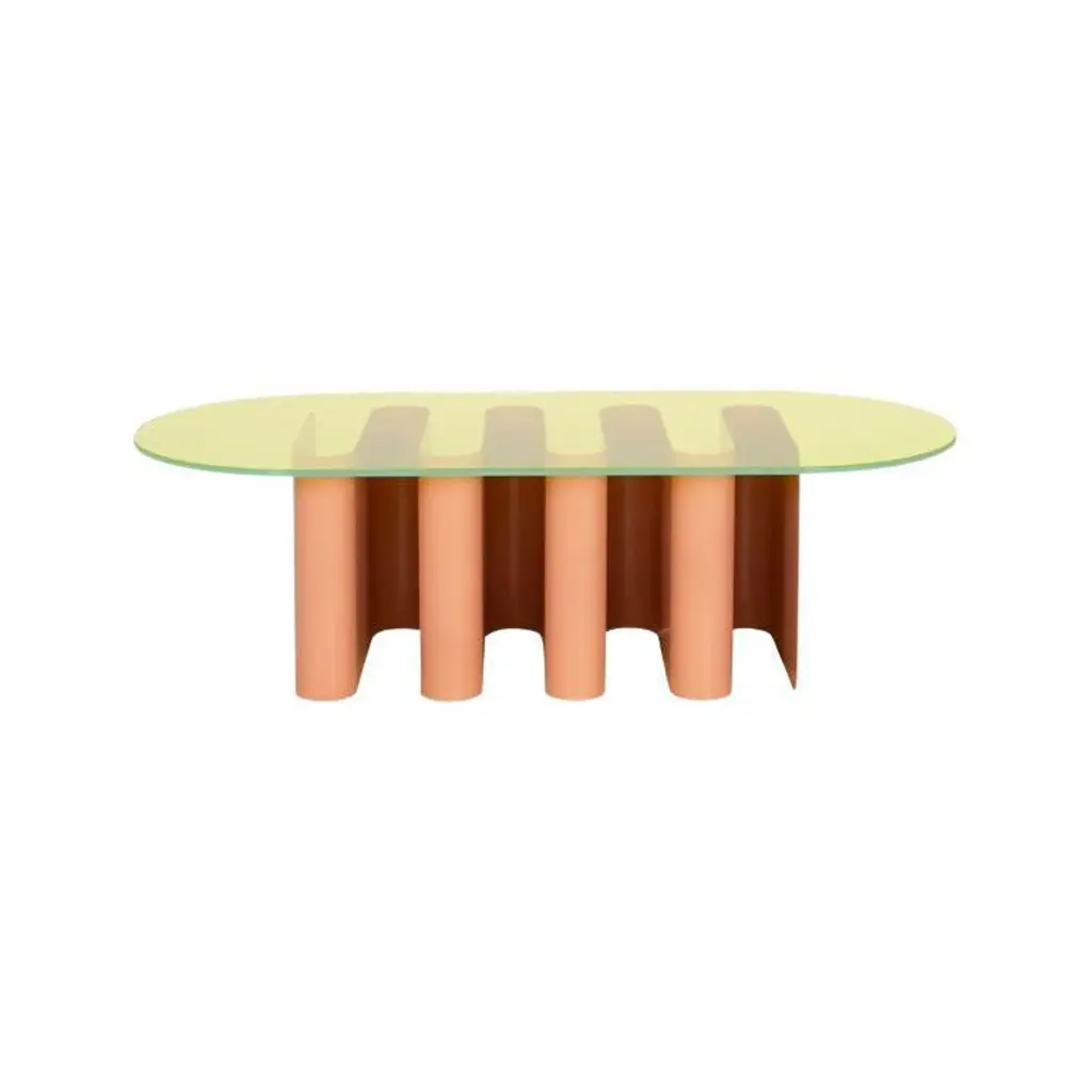Introducing the radiant Padraic Glass Coffee Table, a mesmerizing fusion of functionality and artistry destined to be the centerpiece of any room. Indulge in the warmth of its captivating orange hue that exudes both energy and coziness, turning your coffee or cocktail moments into a vibrant experience. Crafted with the utmost precision, this glass table symbolizes contemporary design with a twist of boldness. Its transparent nature allows it to blend seamlessly into your space while giving it an airy feel. The sleek surface is easy to clean and maintains its luster, inviting you to display your most cherished decorative pieces or to simply enjoy the uncluttered elegance of the glass. Perfect for urban dwellers with an eye for chic and unique furnishings, the Padraic Glass Coffee Table promises to ignite conversations and inspire your interior decor with its spirited charm. Embrace a touch of color and glass-crafted excellence – all in one extraordinary piece of furniture that effortlessly harmonizes with both modern and eclectic tastes. Make it yours today and let your living space burst into life!