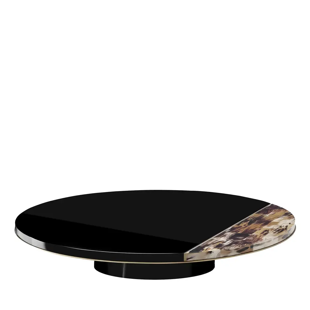 Making a grand statement of luxury and elegance, the stunning Paestum Low Coffee Table is crafted in a polished black lacquered wood and features dark horn feet. At 31 cm in height, it has a diameter of 160 cm and makes a fine addition to a contemporary and formal lounge area.