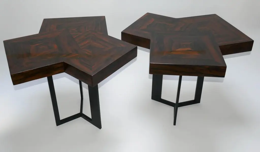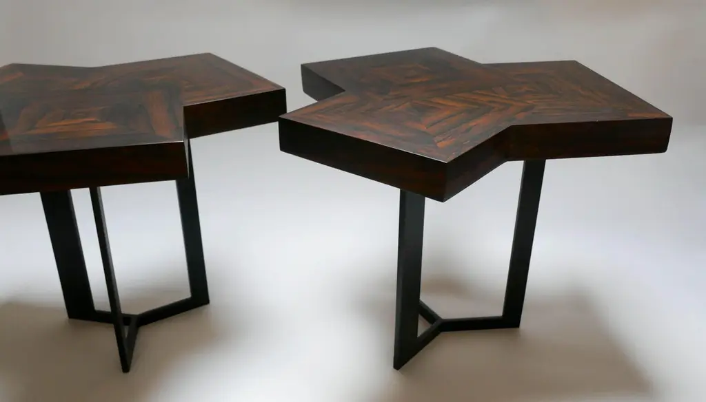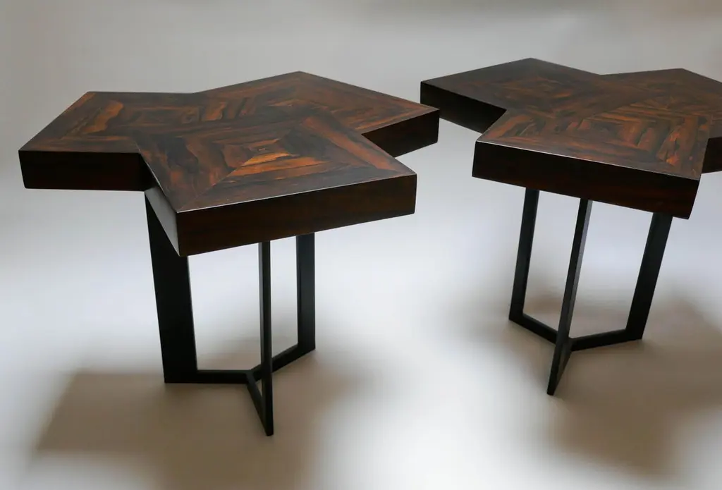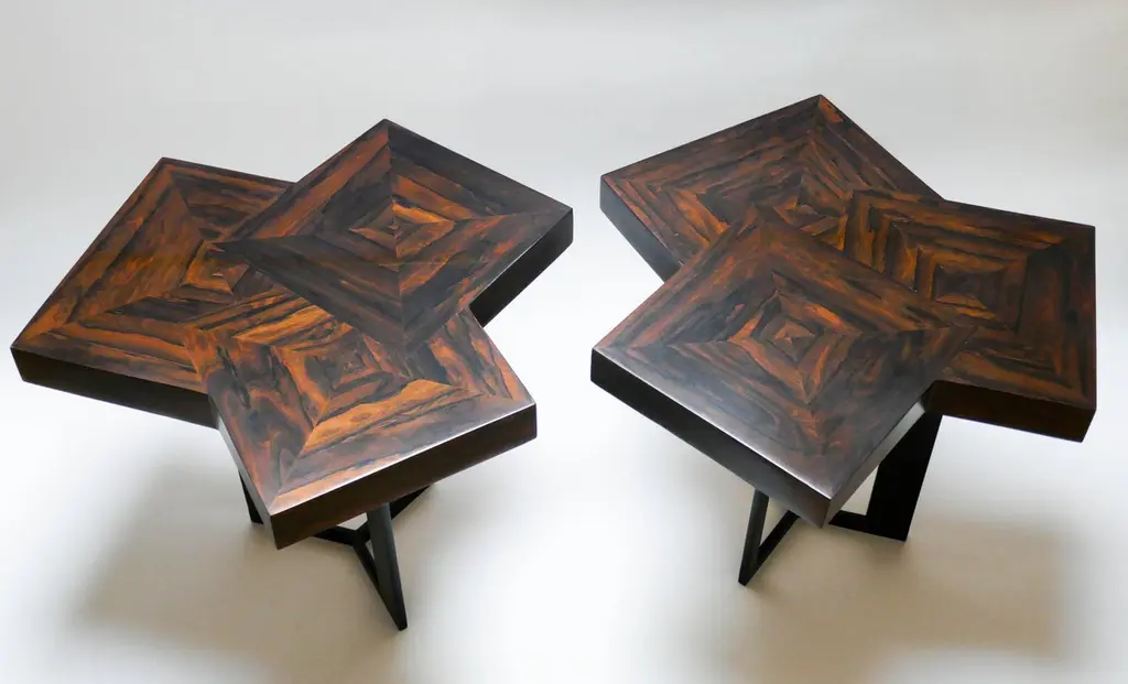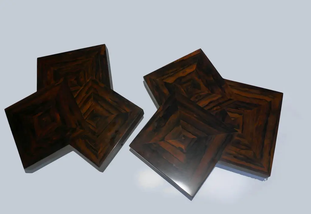 Pair Of Coffee Table "Cubes" In Marquetery By Aymeric Lefort