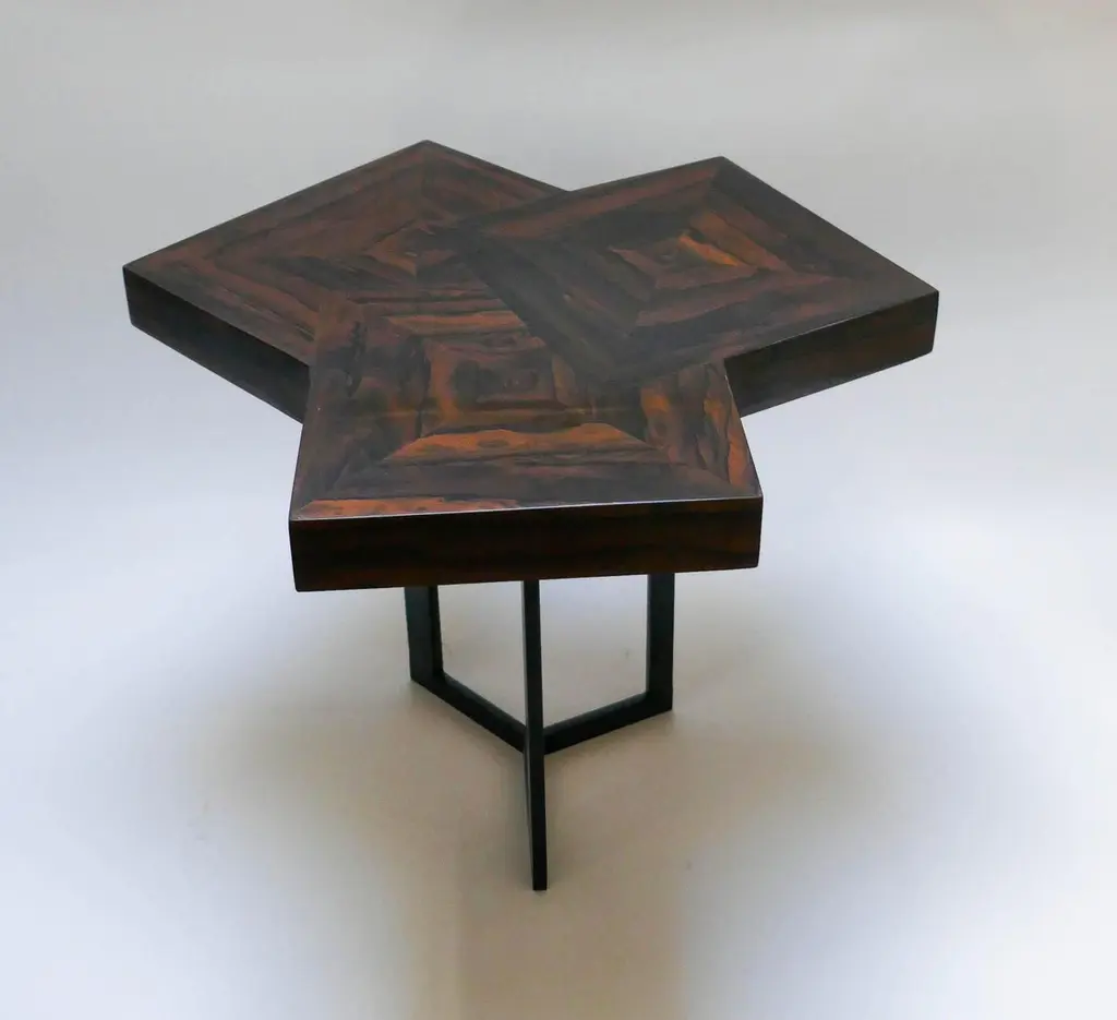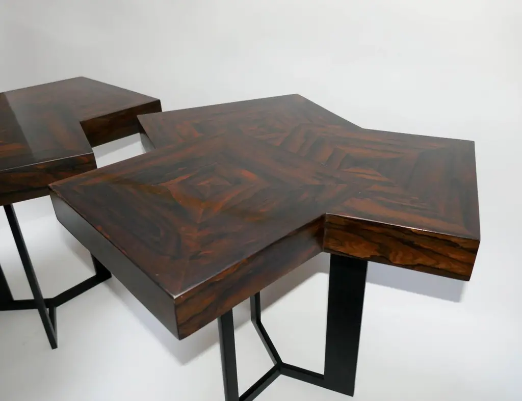 Pair of coffee table in Ziricotte wood and metal black laqued.Do not hesitate to ask for a shipping quote to get the best offer.