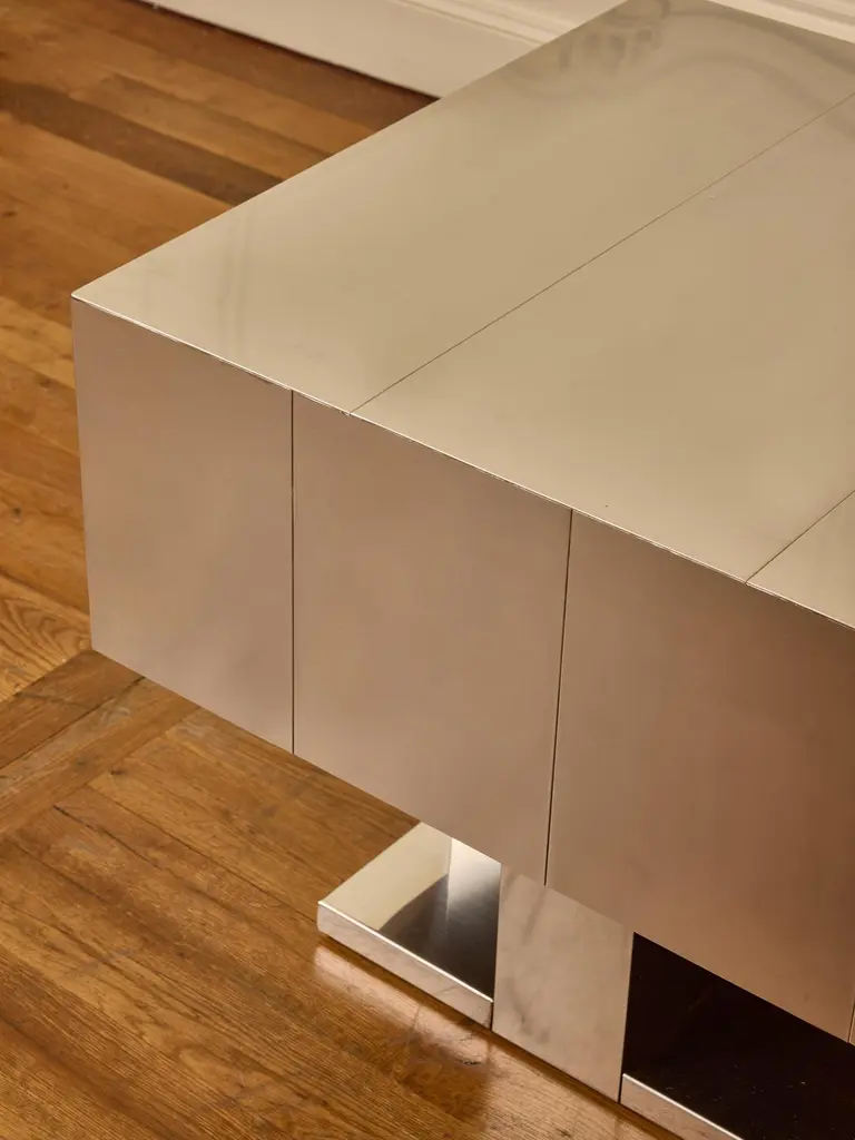 Superb pair of coffee table in brush steel. Ask for availability. Price for the pair but can be sold individually.