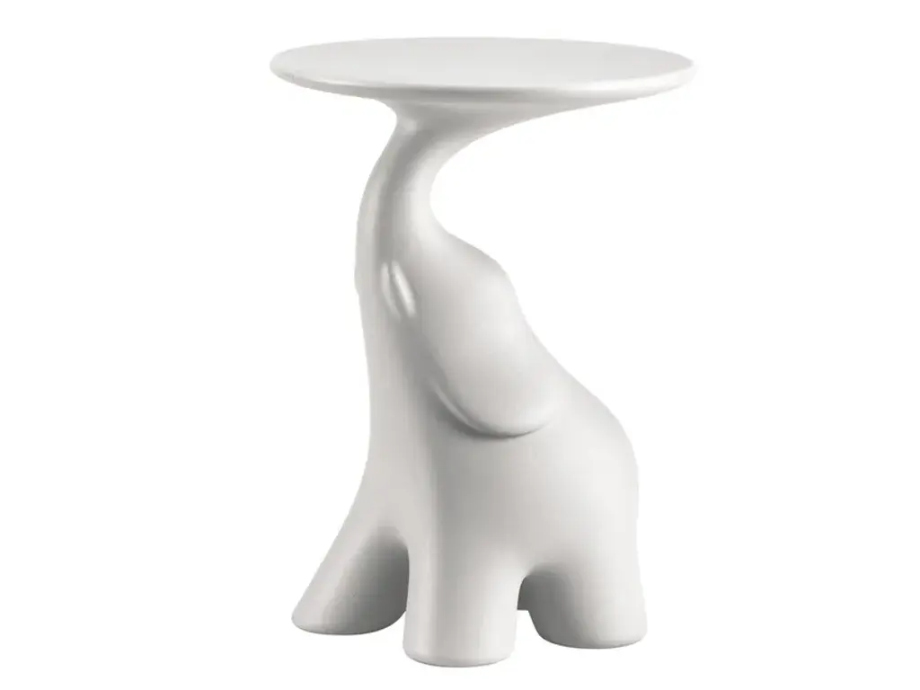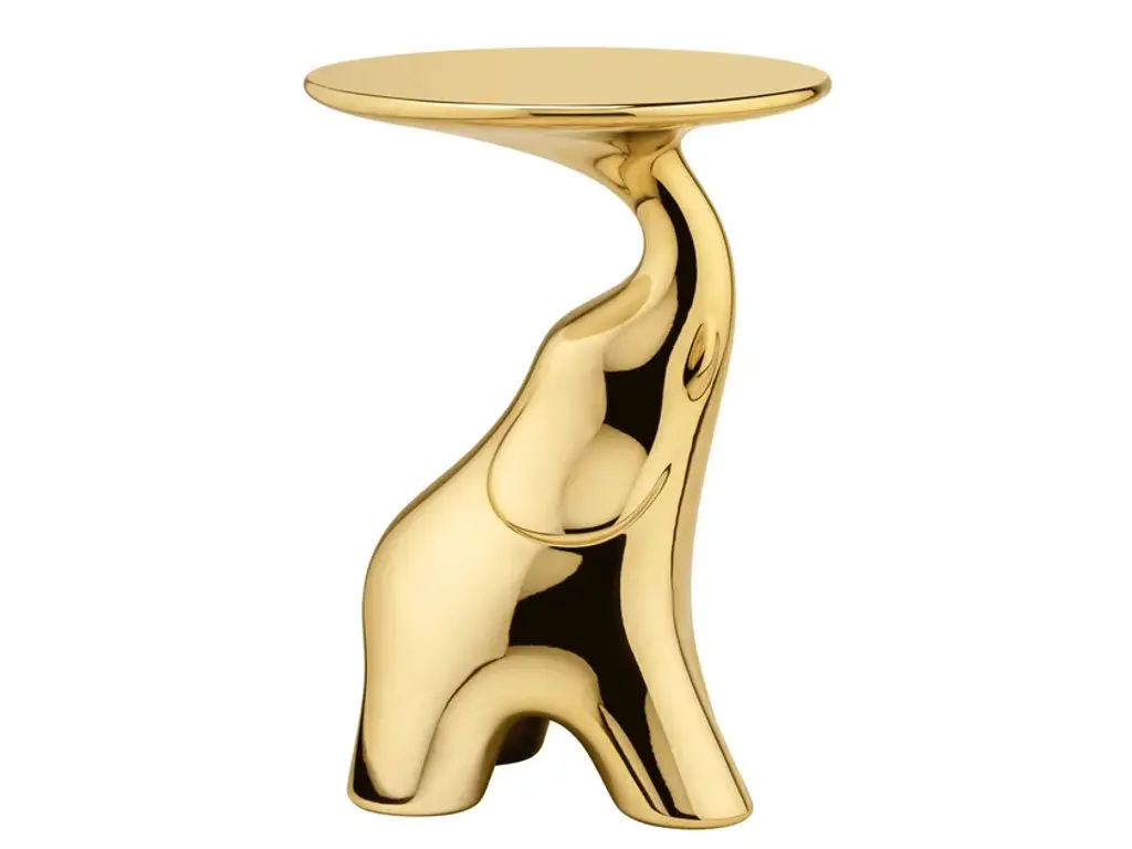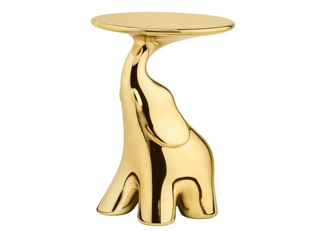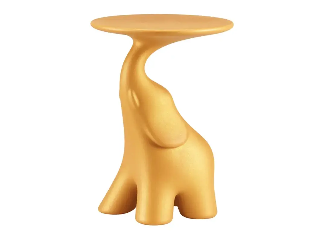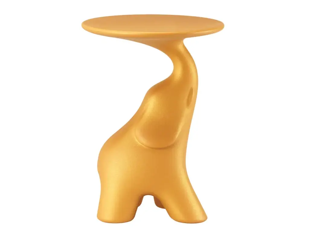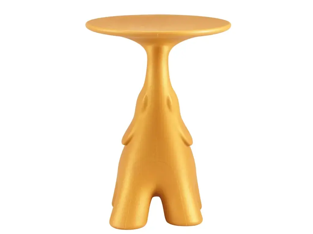 Designed by Stefano Giovannoni, Pako is a small and colourful side table. With its long trunk it holds a circular top that allows to place various objects on top. Available in multiple colours and gold metal finishing.Material: recyclable polyethylene
