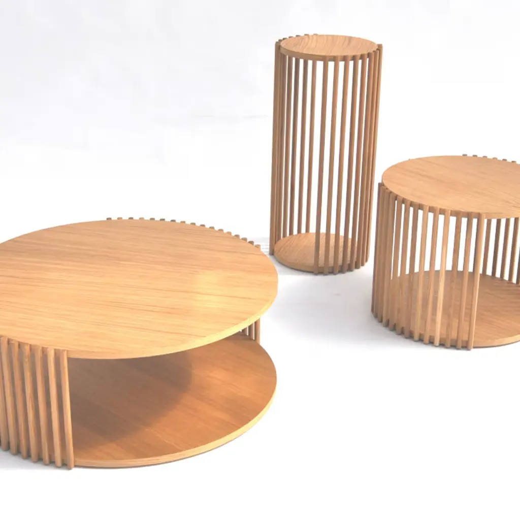 Merging clean and simple style with refined craftsmanship and first-rate materials, this side table is both timeless and contemporary. Part of the Palafitte Collection inspired by Venice's piling system supporting the "floating city, it features a large and round base and top, made of veneered durmast, connected with a series of thin vertical slats, fashioned of solid durmast. Please consult the Artemest catalog for other similar designs.