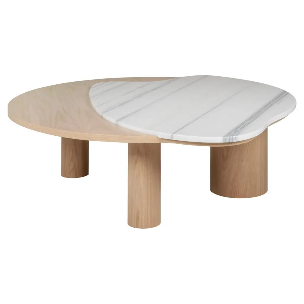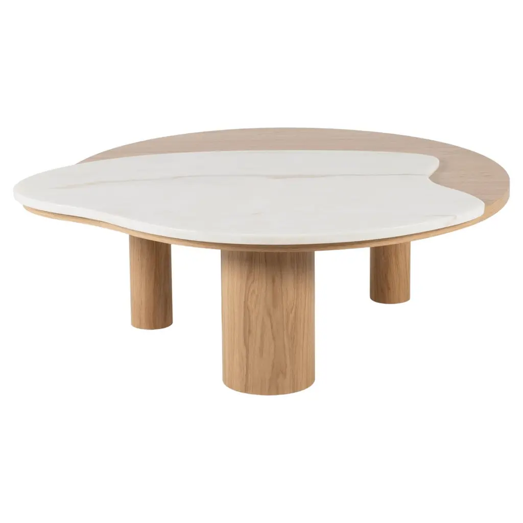 Palecek Caleb Modern Classic White Marble Grey Hardwood Coffee Table - Tall