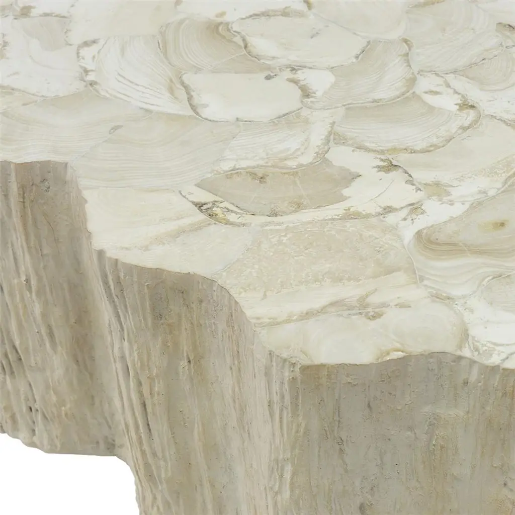 Palecek Camilla Coastal Beach White Inlaid Fossilized Clam Oval Coffee Table