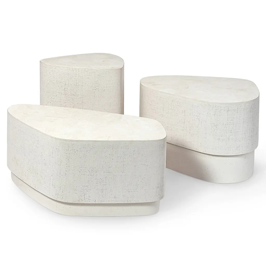 Palecek Holland Coastal Beach White Resin Agate Stone Outdoor Coffee Table - Tall