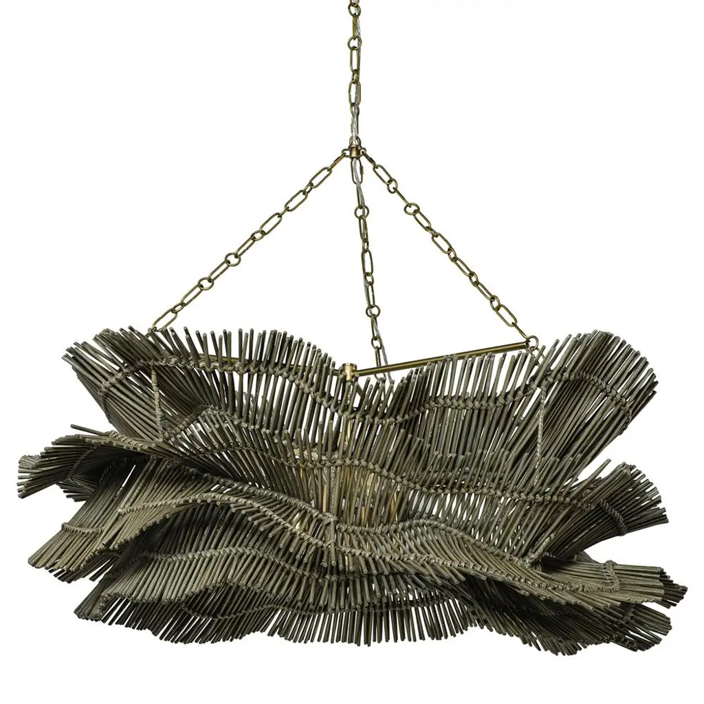 Palecek Miramar Coastal Beach Chalk White Rattan Chandelier