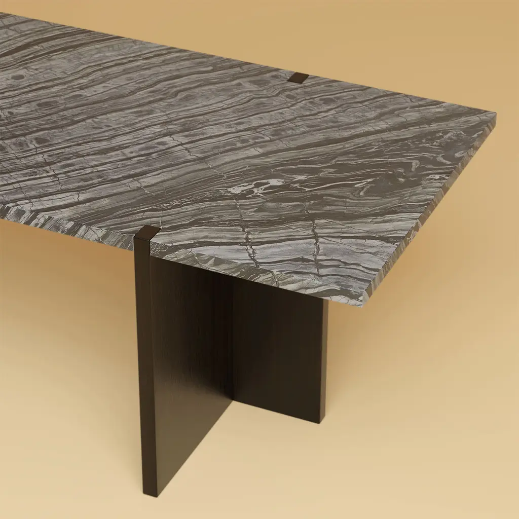 Palm Black Kenya Marble And Oak Wood Coffee Table