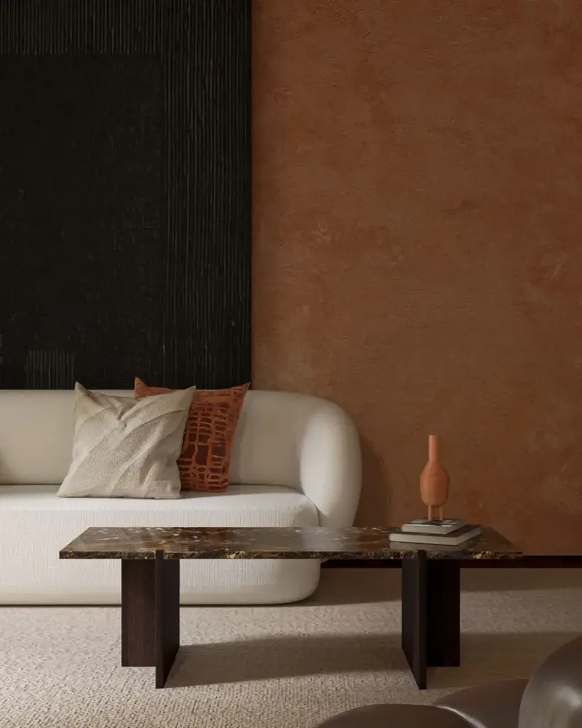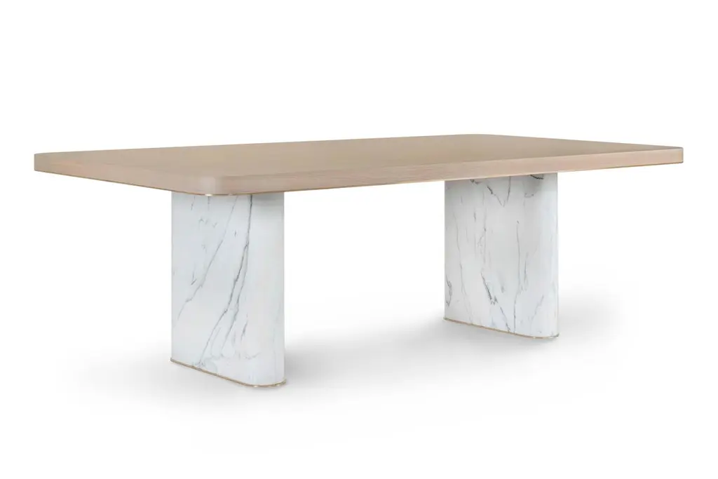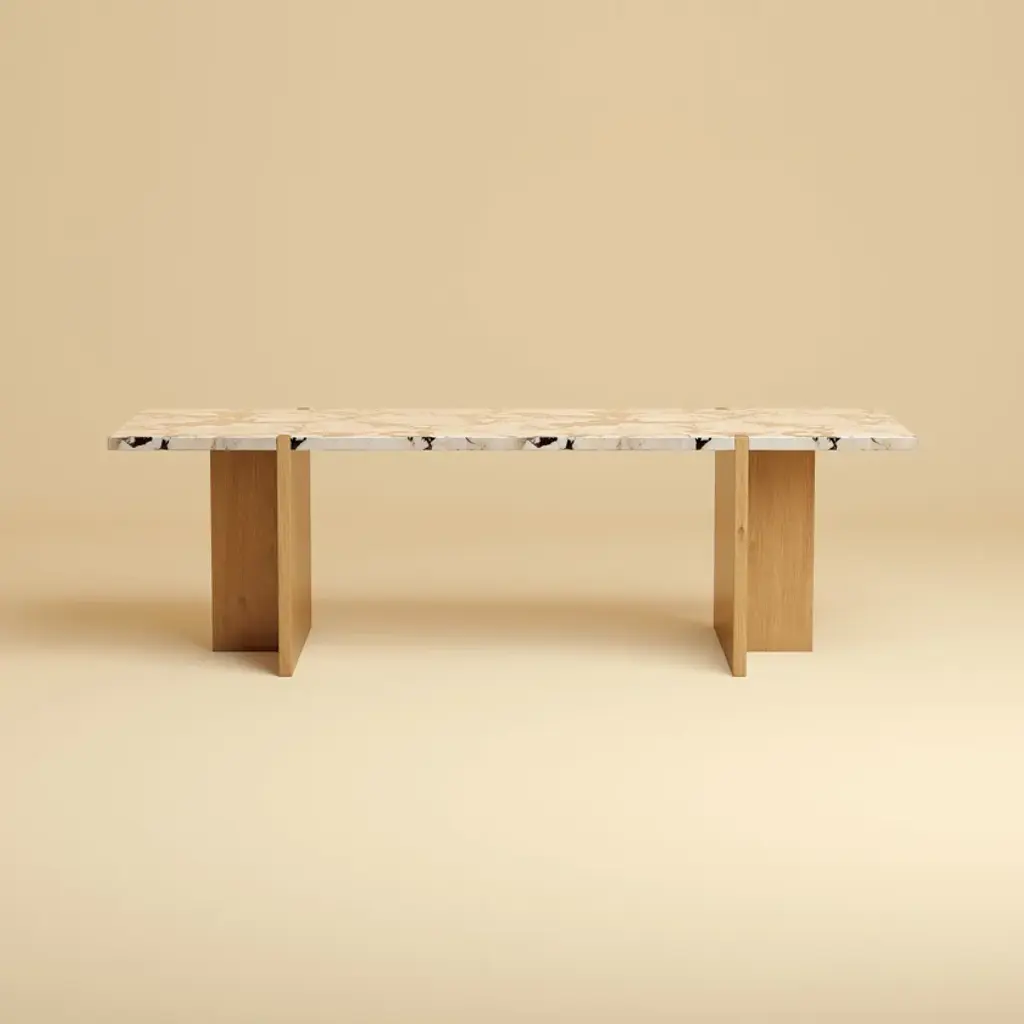 Palm is rectangular wooden and marble Calacatta Violet lounge table.The Palm lounge table by Lebanto is a masterpiece of modern design and Italian craftsmanship, featuring a luxurious marble or travertine tabletop and solid oak legs. This elegant lounge table stands out with its unique interlocking leg detail, where the solid oak legs seamlessly connect with the tabletop, creating a striking and artistic focal point. The Palm effortlessly combines natural materials with innovative design, making it perfect for adding a touch of sophistication to any space. The Palm is available with your choice of premium marble or travertine, offering a natural, high-end finish that pairs beautifully with the warmth and durability of solid oak. Its minimalist design and intricate craftsmanship make it a versatile addition to both contemporary and classic interiors, enhancing your space with its clean lines and organic textures.