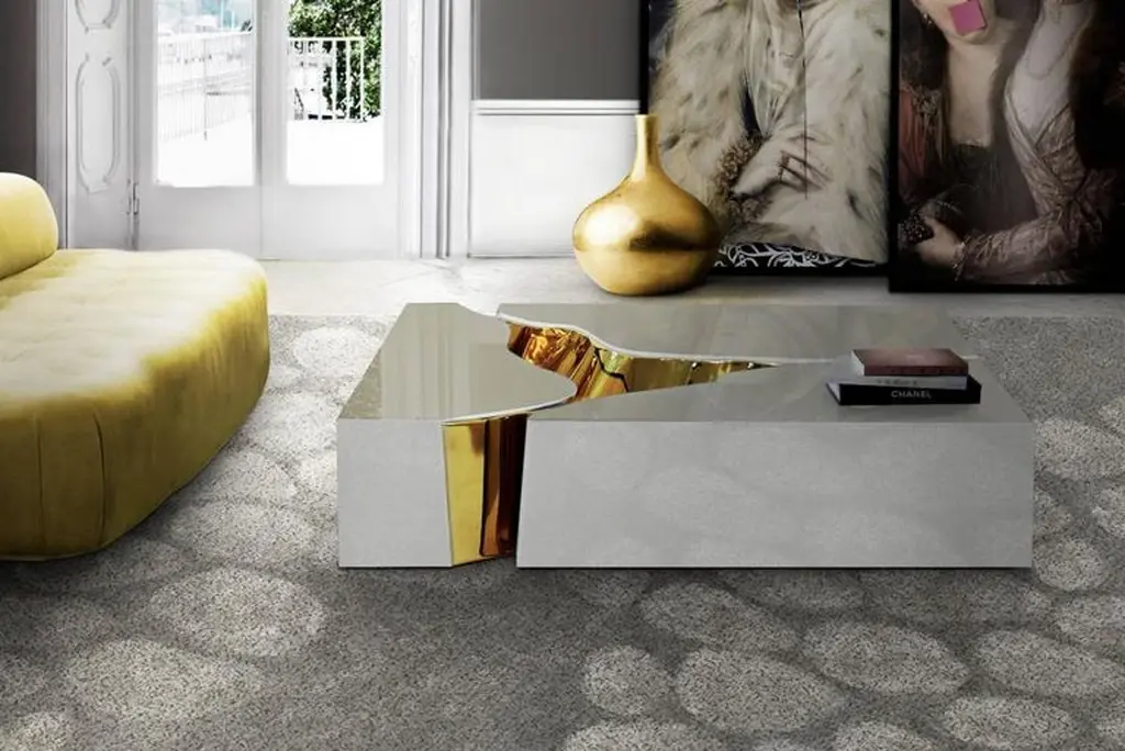 Paradise Coffee Table In Coated Polished Stainless Steel And Polished Brass