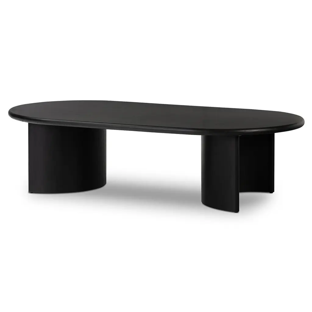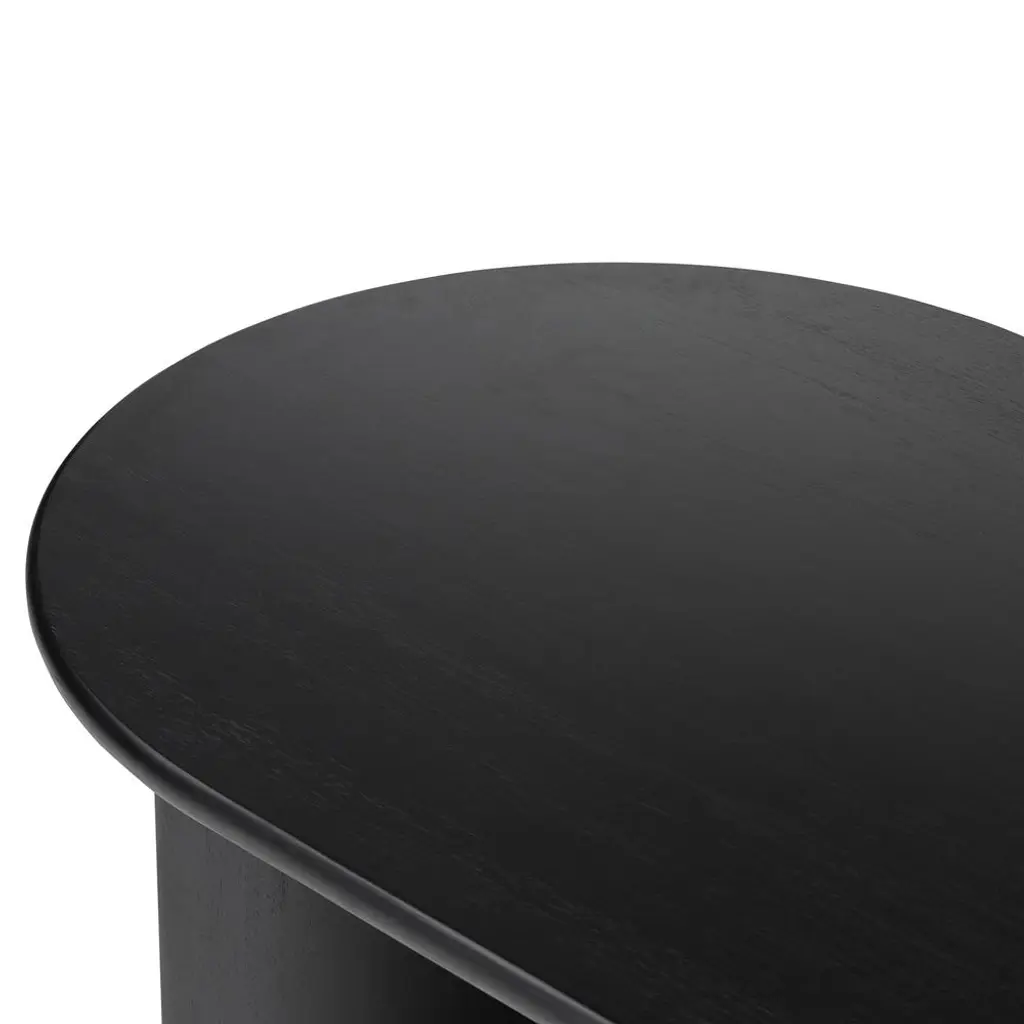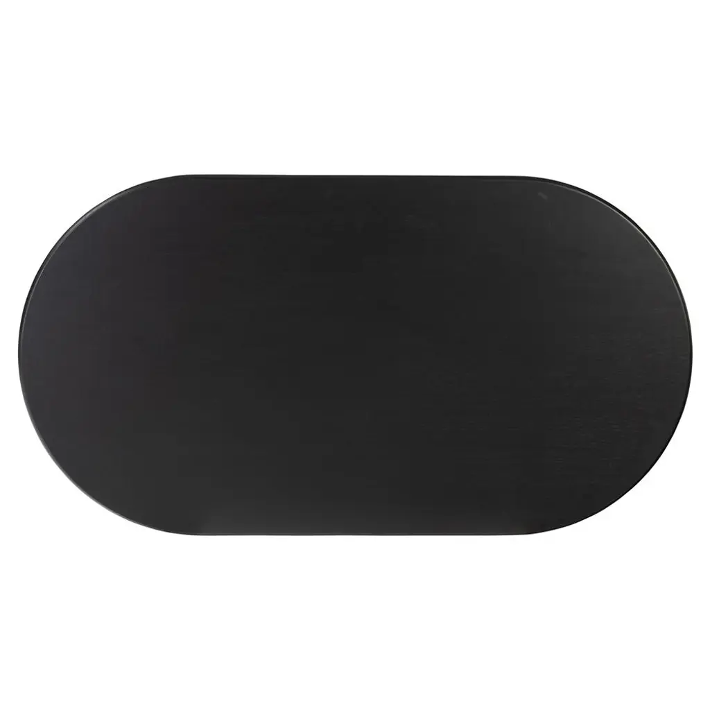 Paris Rustic Lodge Black Acacia Wood Crescent Base Oval Coffee Table - Large