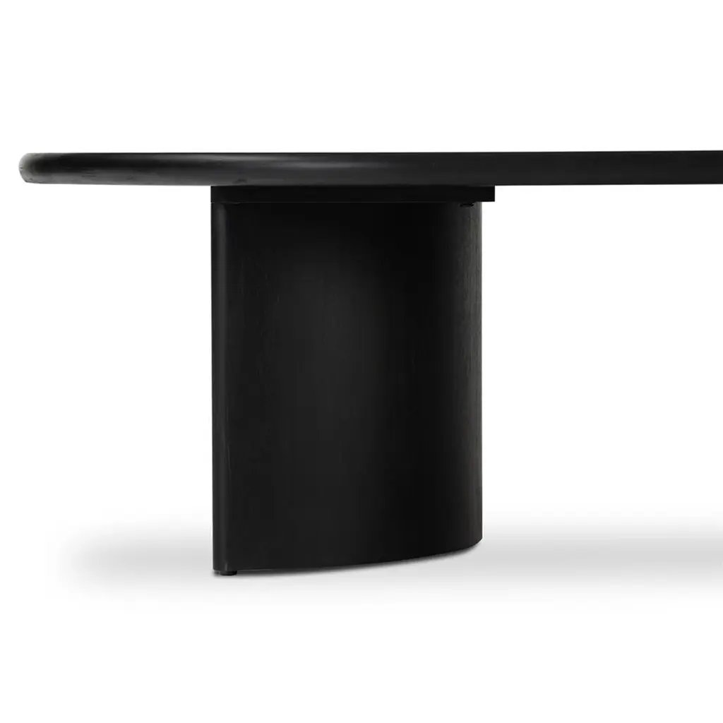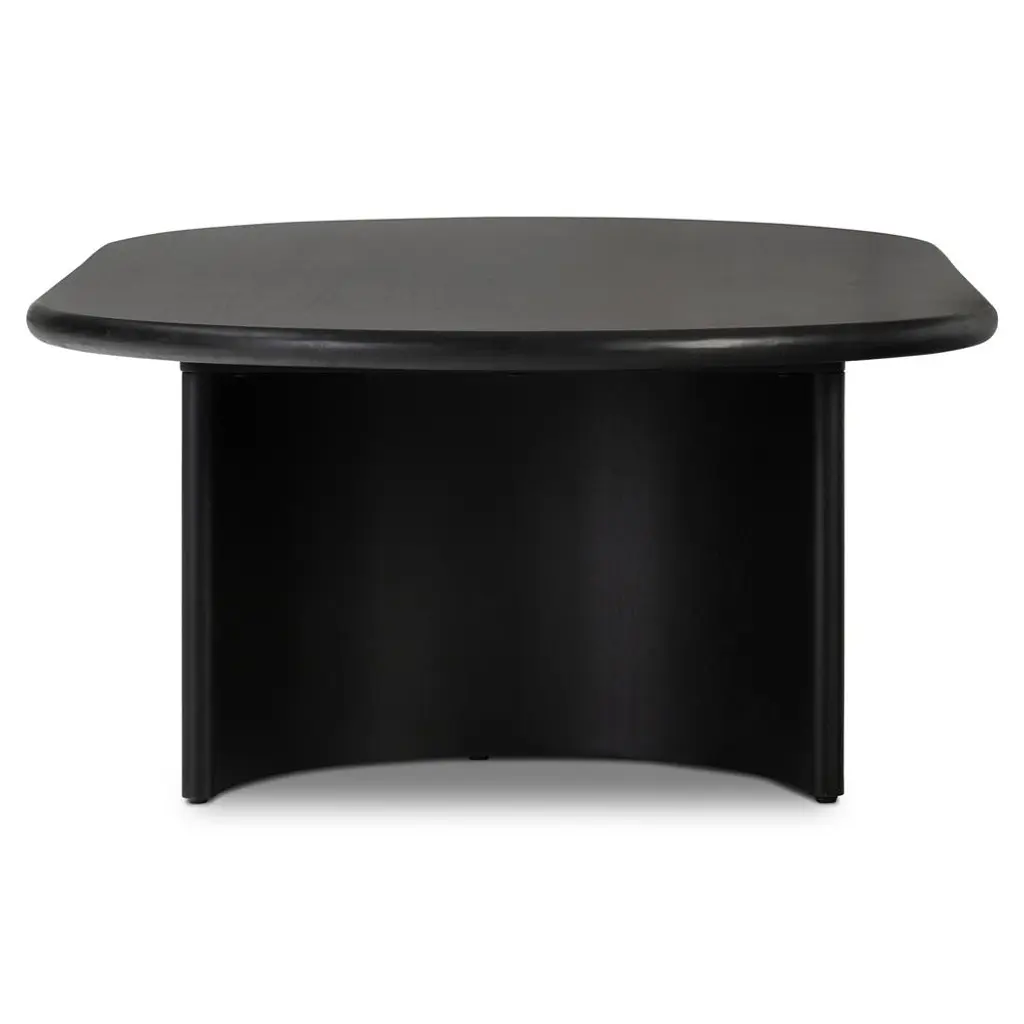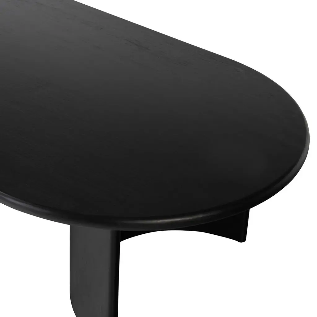 Paris Rustic Lodge Black Acacia Wood Crescent Base Oval Coffee Table - Large