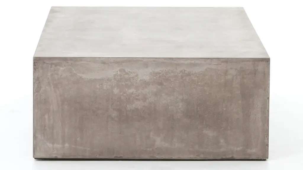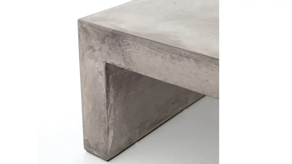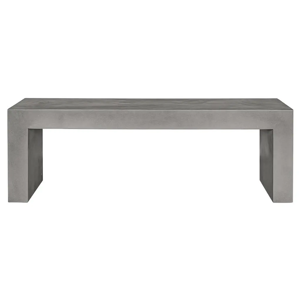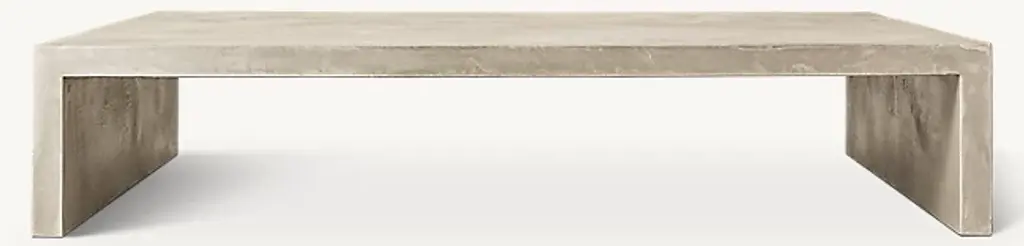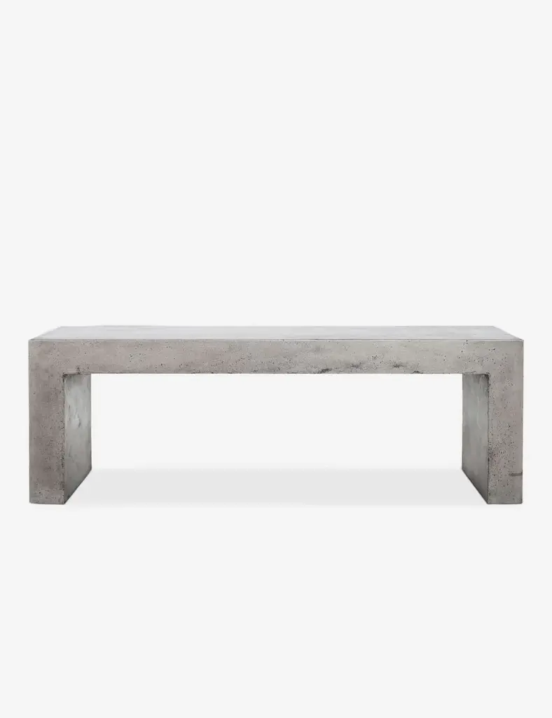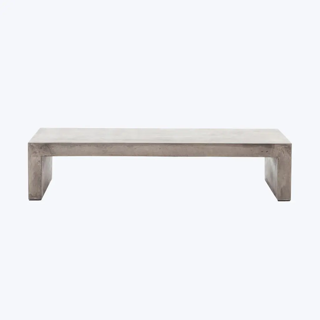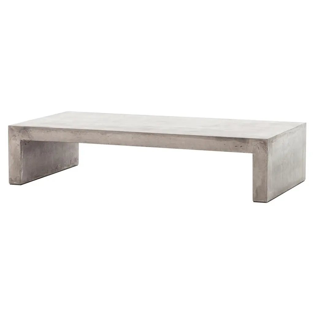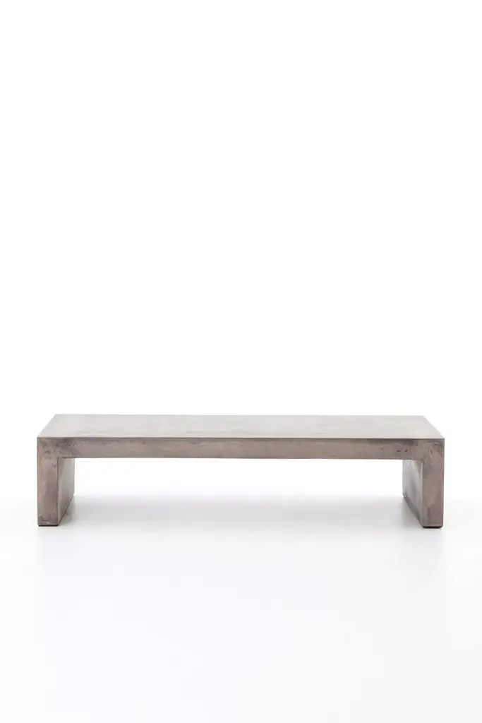 The Parish outdoor coffee table features industrial materials in smoothly refined shapes. Dark grey concrete forms a simple waterfall coffee table. Made for indoor or outdoor spaces, cover or store indoors during inclement weather and when not in use.