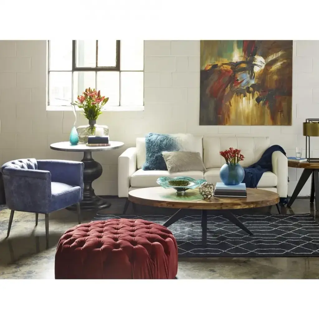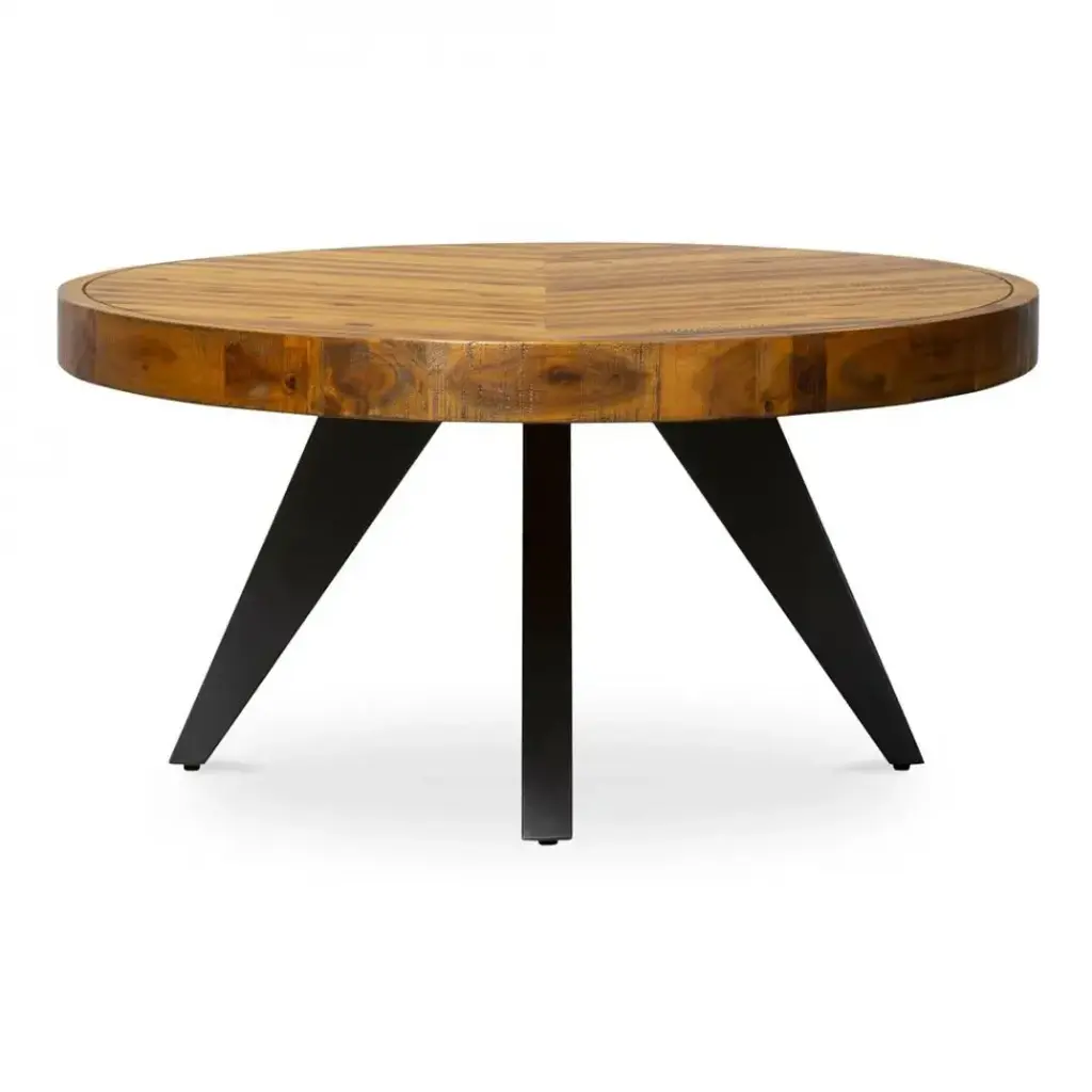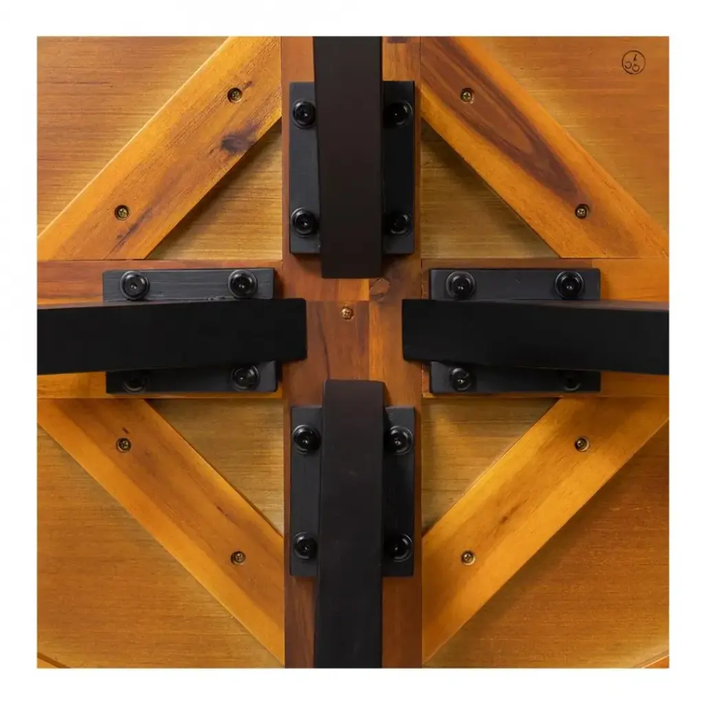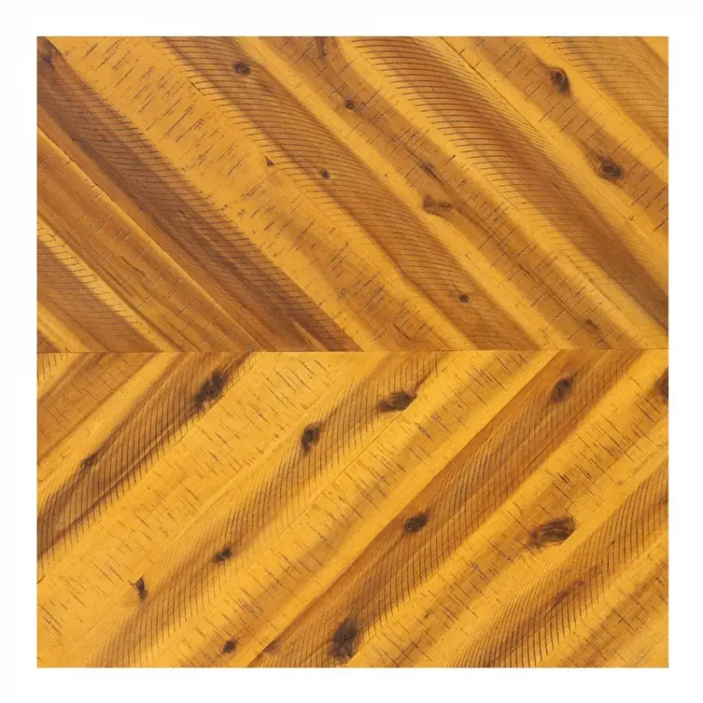 Each piece of solid acacia is carefully hand-selected to ensure great looking tops with attention paid to variation and the final appearance of each individual piece. Parquet patterned top with painted black legs making it rustic, yet ergonomically designed for your space.