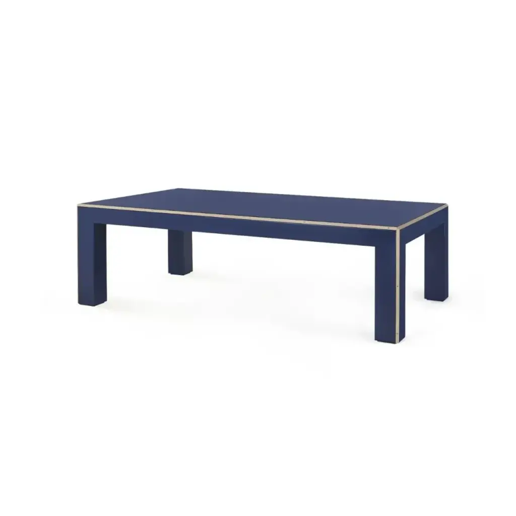 The Parsons Collection exemplifies Villa & House’s commitment to bringing luxury to life through timeless silhouettes, unique materials, and unmatched craftsmanship. In the Parsons Coffee Table, a classic shape is reimagined through a contemporary lens, with stout lines and structured proportions giving its pared-down profile a splash of modern personality. In lieu of ornamentation, the piece showcases a sumptuous grasscloth finish in a deep blue, sealed with lacquer for subtle shine and layered tactility. The Parsons’ sophisticated simplicity and uniform color make it the perfect canvas for personalized decor and display. Dress it up with gilded accents in a lavishly decorated space, or embrace its minimalism for modern schemes. It’s just waiting for your creative touch.