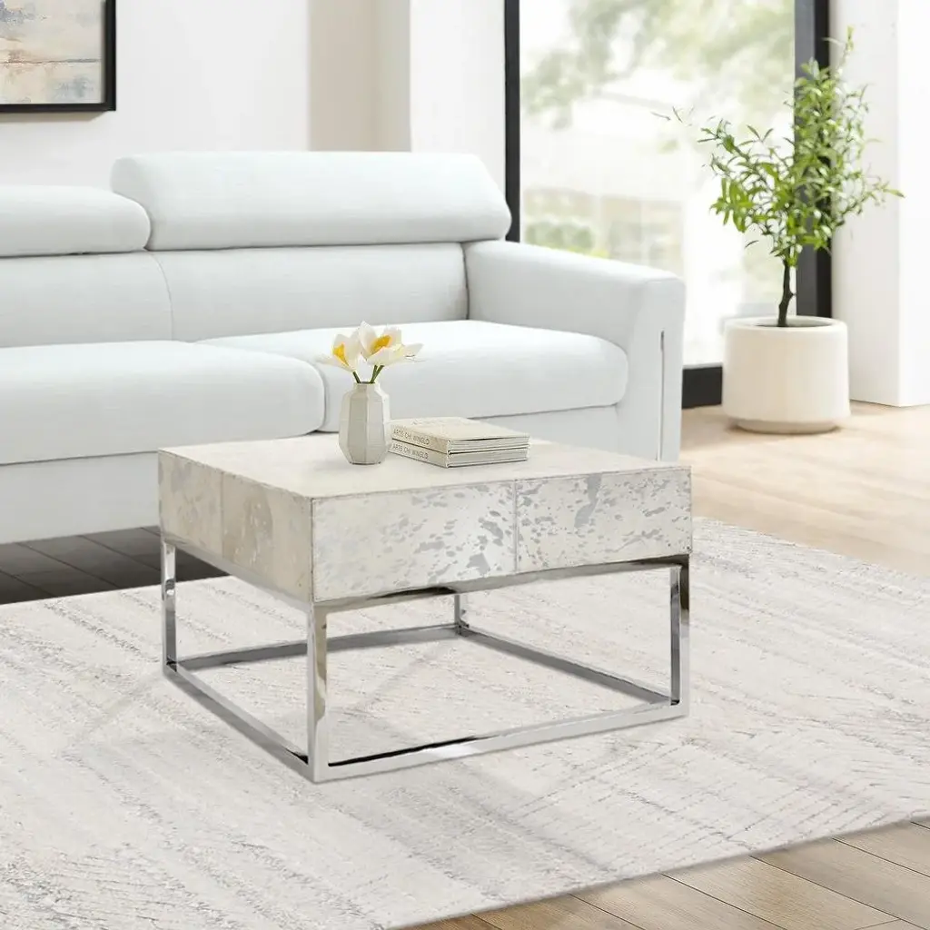 Pasargad Home Safari Cowhide & Steel Silver Coffee Table