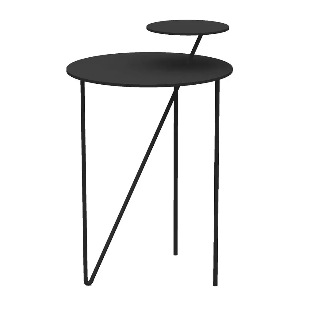Channeling a sense of effortless lightness, this coffee table makes for a superb solution for colorful contemporary interiors. The airy silhouette in anthracite-lacquered metal features a standard skeleton with three legs supporting a circular top, yet made unique by the diagonal extension of one of the legs that pierce the large top to support a raised, smaller one, where to rest a teapot or an exquisite sculpture. Please consult the Concierge for color customizations and marble variants.