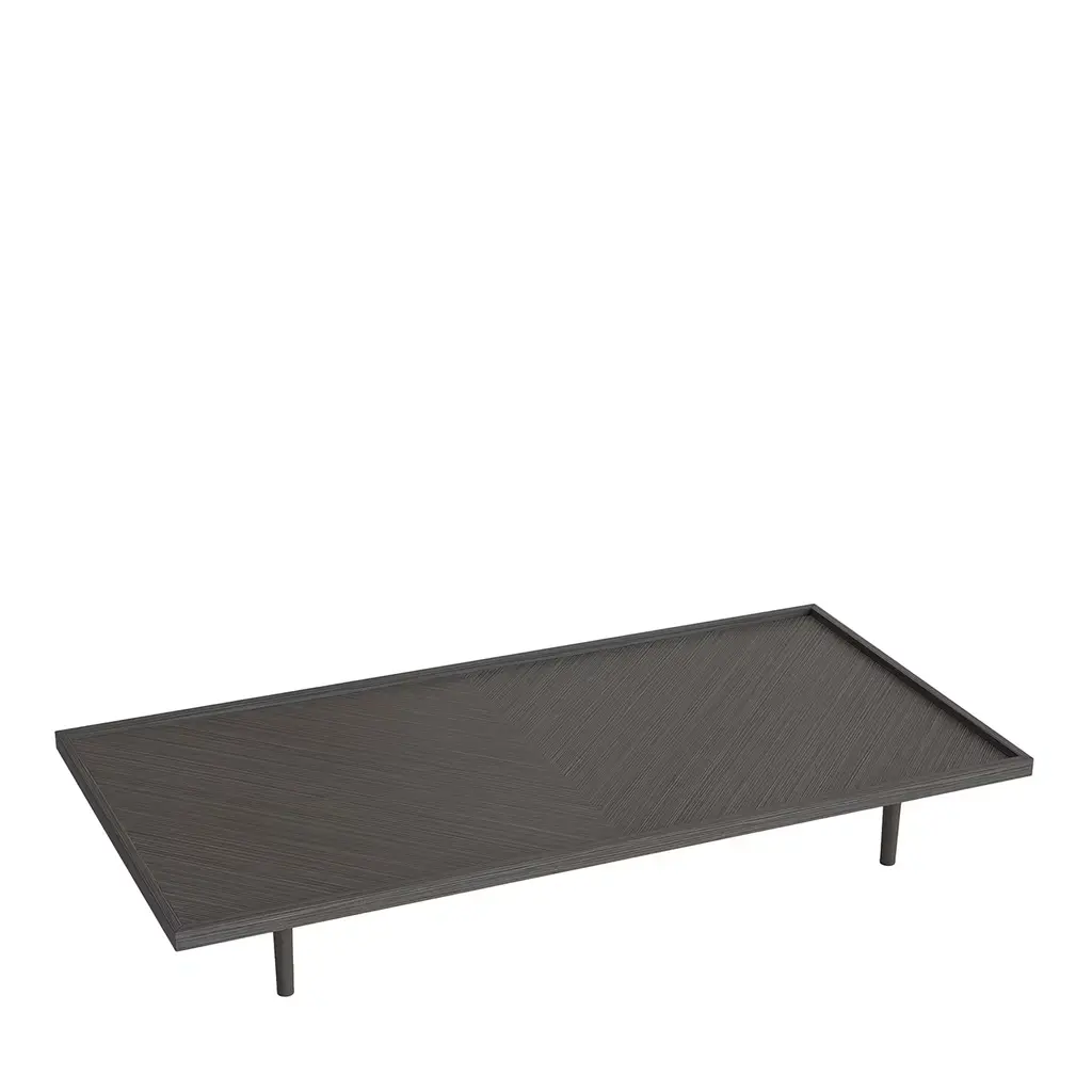 Essential geometric design. The Patchwork table is made of wood, a material that guarantees maximum technical performance but that is also a symbol of the need, nowadays, to use sustainable materials.Structure in plywood, gray oak veneer finish. Base in solid oak.